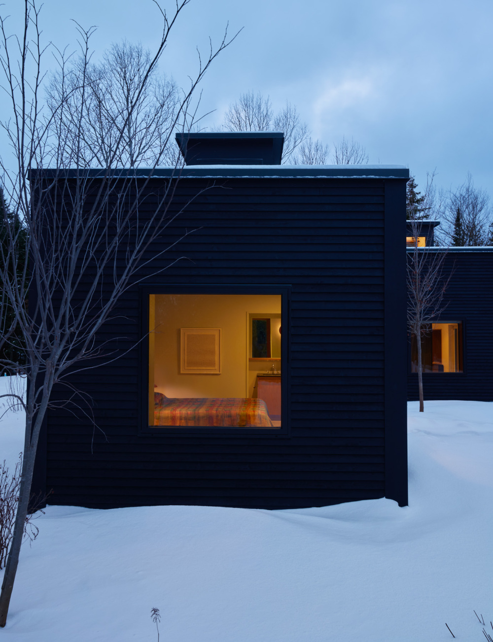 在密歇根湖的粼粼波光与葱郁针叶林之间,五座木质亭楼度假屋设计以错落的姿态铺展于场地之上,构成了这座兼具解构主义锋芒与北欧温情的湖滨别墅。由安·安·安设计事务所(And And And Studio)与萨尔梅拉建筑事务所(Salmela Architect)联手打造的作品,既是对业主“独立功能与景观融合”需求的精准落地,更是一场“建筑解构之形”与“室内温暖之质”的完美对话——斯堪的纳维亚风格的简约精致,经由橡木的温润、蓝绿的静谧与书架的框景巧思,将密歇根湖的壮阔与业主的生活愿景,织入每一处空间肌理。