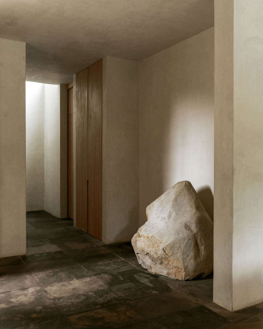 建筑的过渡区域(如走廊)设计堪称 “艺术与自然的对话场”。走廊中放置的天然石材雕塑,未做过多人工雕琢,保留了石材的原始形态,与混凝土墙面、木质地板形成材质的呼应,仿佛是从森林中 “生长” 出来的艺术装置。光线从走廊尽头的天窗洒下,形成明暗的对比,让过渡空间成为 “行走的艺术画廊”。