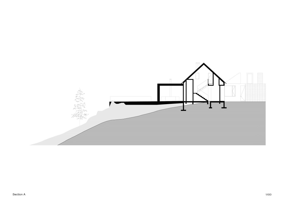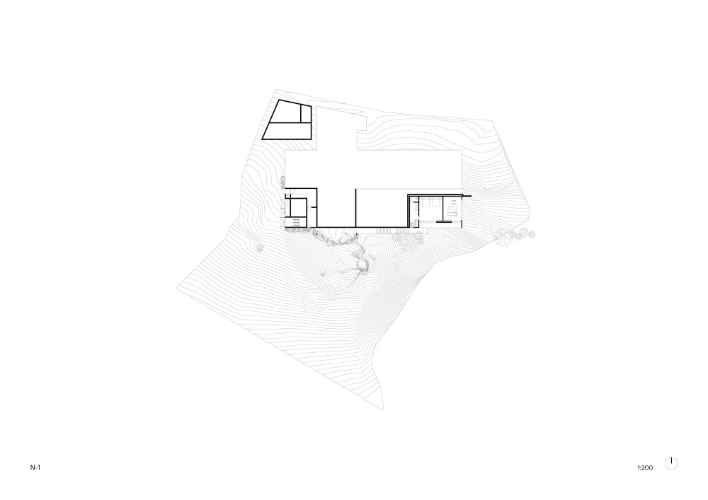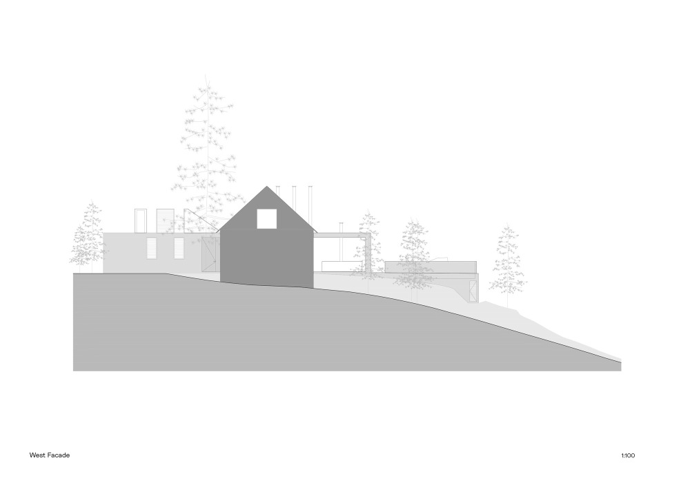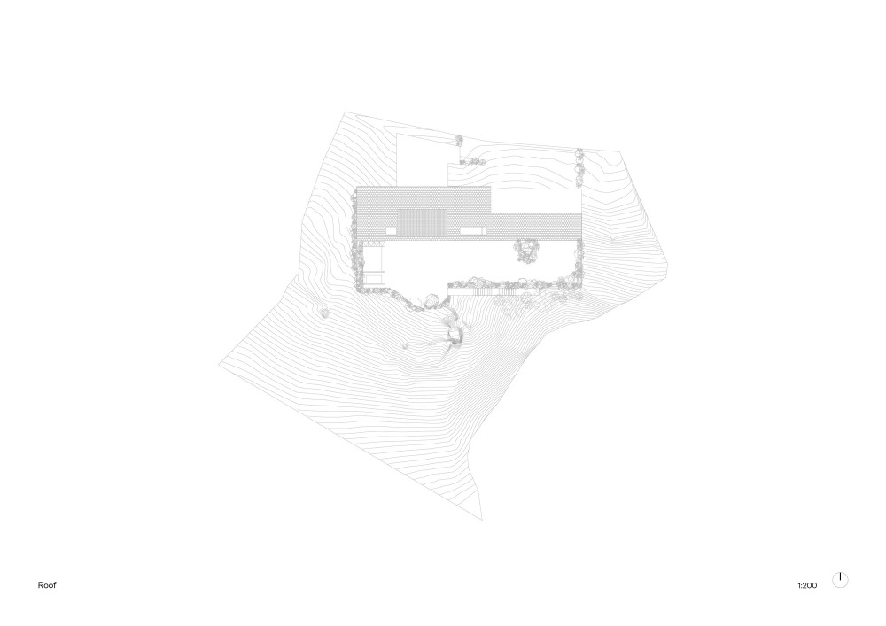 从外观上看,混凝土的厚重墙体与木质屋顶的组合,形成了 “大地与天空” 的隐喻 —— 混凝土墙如森林的基座,承接并回应着地形的起伏;木质屋顶则以坡顶的形态,呼应着树木的生长姿态,同时为建筑内部引入了充足的自然光线。建筑的开窗策略极具巧思,大尺度的落地窗并非为了炫耀景观,而是以 “画框” 的姿态,将森林的四季变化框定为室内的动态艺术,让居住者在起居、休憩时,都能与自然保持视觉与心理的连接。更值得称道的是建筑与植被的关系:建筑周边的植被未被大规模清理,而是以 “保留 + 引导” 的方式,让树木、藤蔓自然地生长在建筑的间隙中,形成 “建筑中有森林,森林中有建筑” 的共生画面。这种设计让建筑从落成的那一刻起,就开始了与自然的 “共同生长”,随着时间的推移,建筑会逐渐被植被包裹,成为森林的一部分。