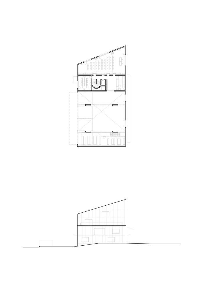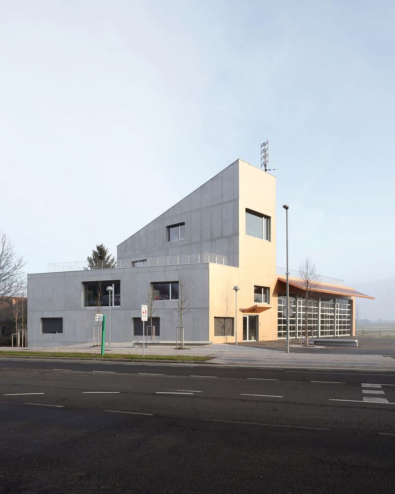 特日津(Trzin)市政旧区入口处设有一座保护与救援中心的消防站设计。其混凝土的外观设计灵感源自传统消防站的典型形制,标志性的塔楼(用于晾晒水带)成为新的空间主导元素,象征着抵达特日津的地标信号。