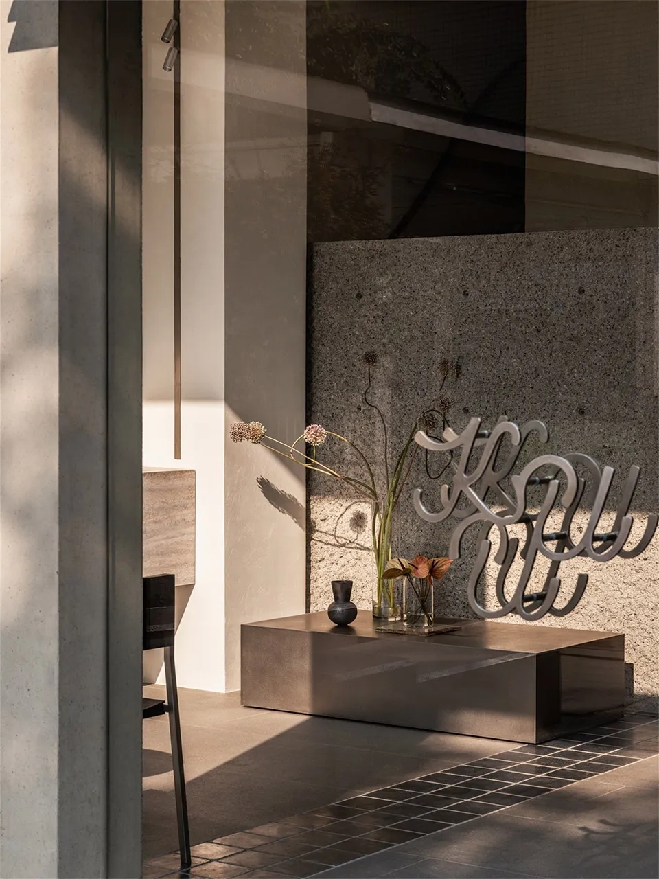 混凝土以恒久的姿态,包裹着每一次花开的悸动。空间不言,却有无数故事流转于其中。光影是无形的笔墨,混凝土是沉默的纸,而花,是那一笔最灵动的诗行,它短暂地停驻,绽放、凋零、再生,最终,归于时间的沉静之中。