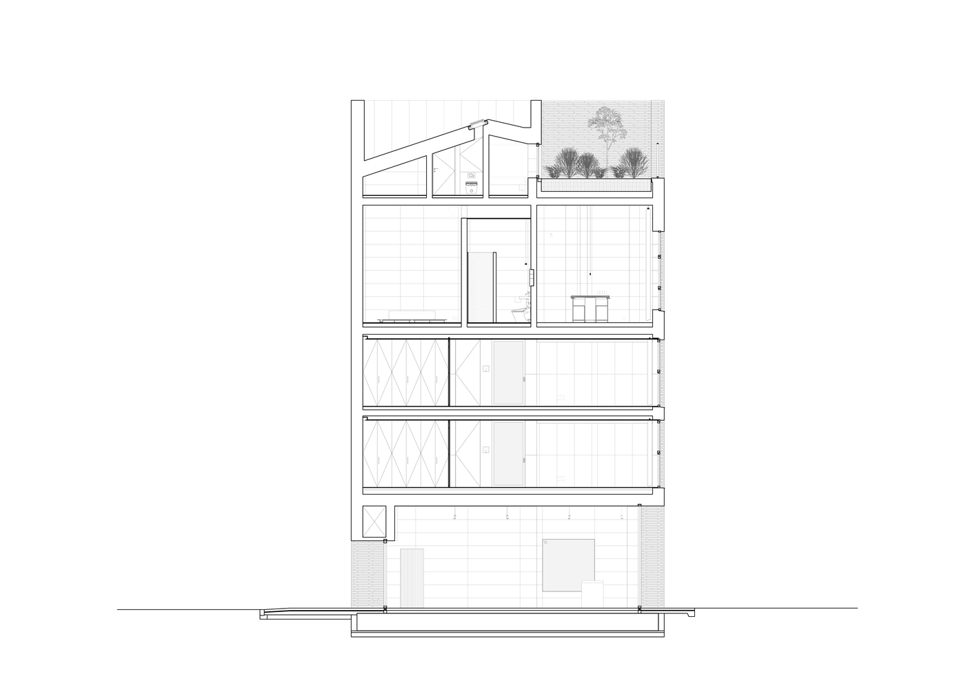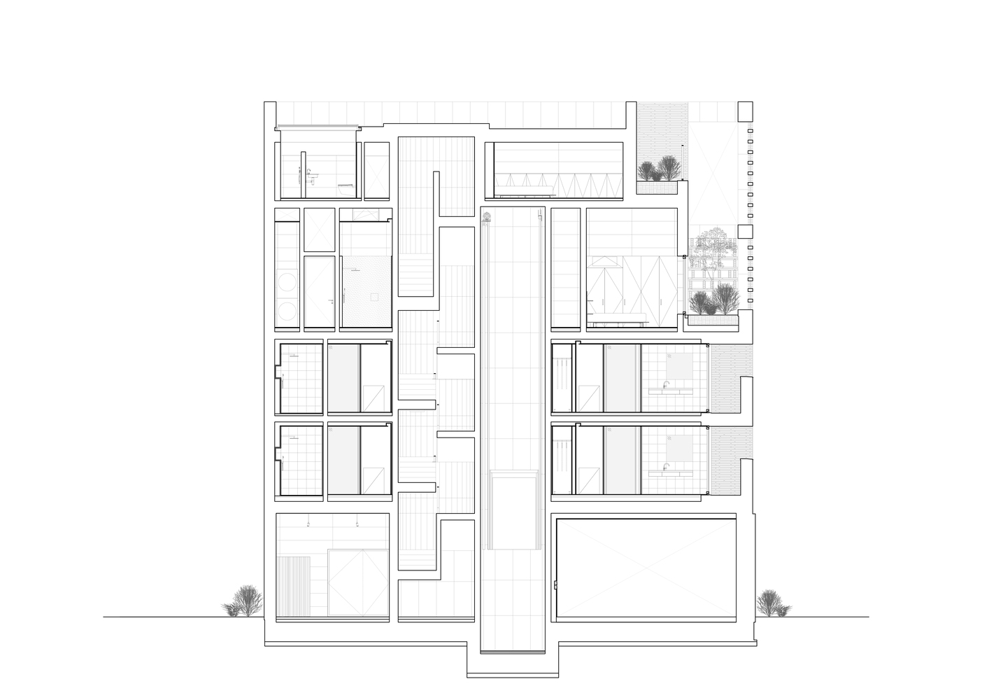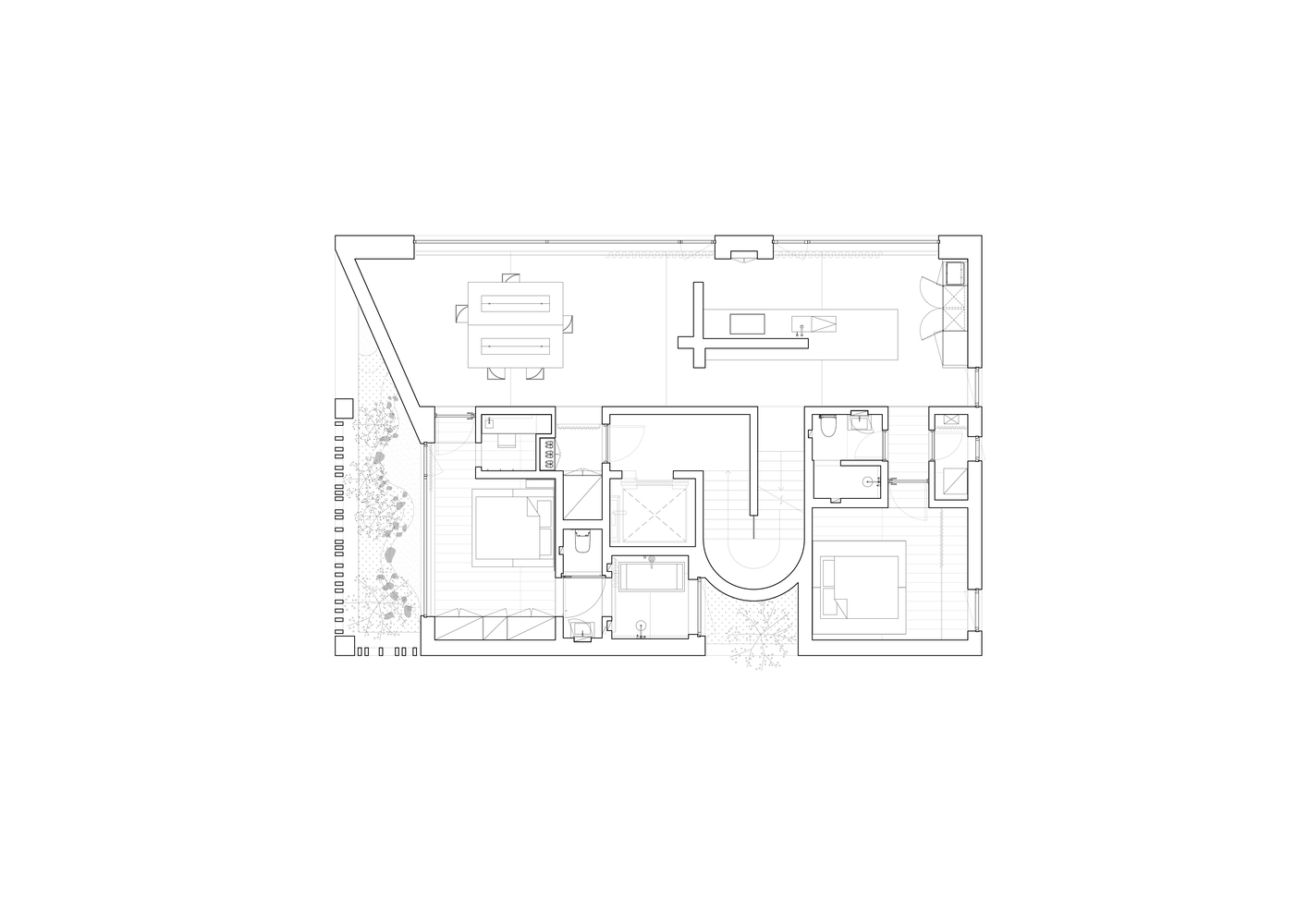 Raw House 为更优质的城市生活提供了一个小巧却贴心的范例。它通过朝向设计、材料克制和空间静谧,促进环境适应性和用户福祉。被动式策略定义了空间布局:公共起居区和厨房朝南,充分利用日光和季节性温暖;卧室位于北侧,避免阳光直射,有助于提升睡眠质量并降低制冷需求。建筑的混凝土结构提供热质量,白天吸收热量,夜间释放,同时帮助调节室内湿度。