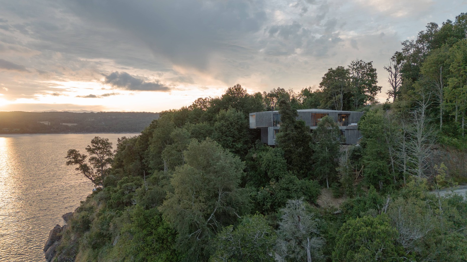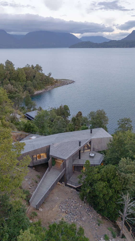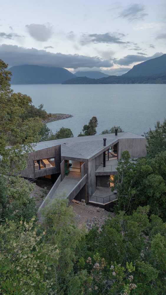 当湖泊逆光与悬崖相遇点亮绽放的建筑之花度假屋设计