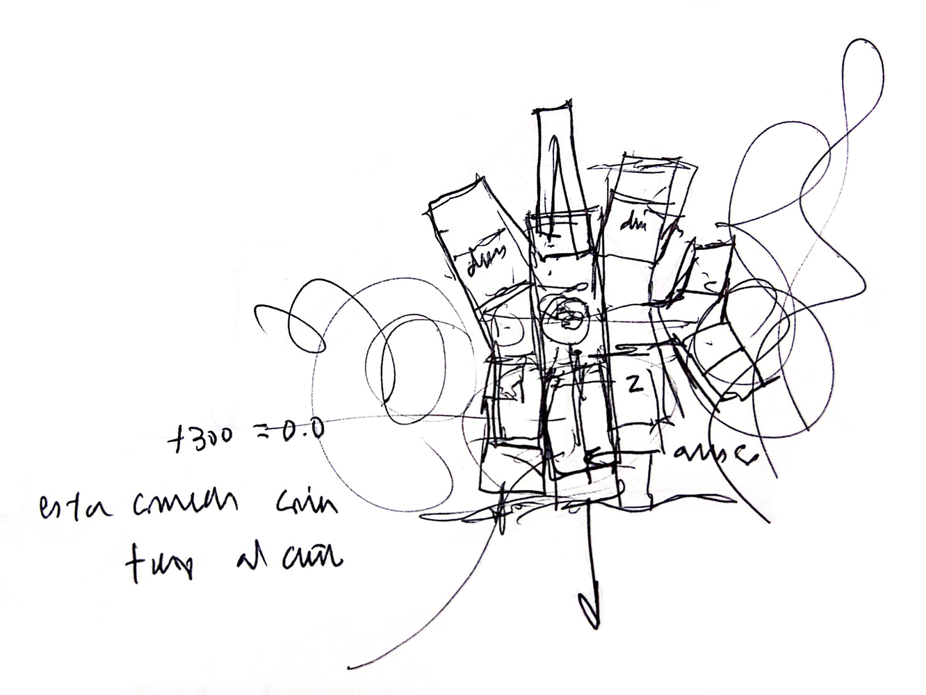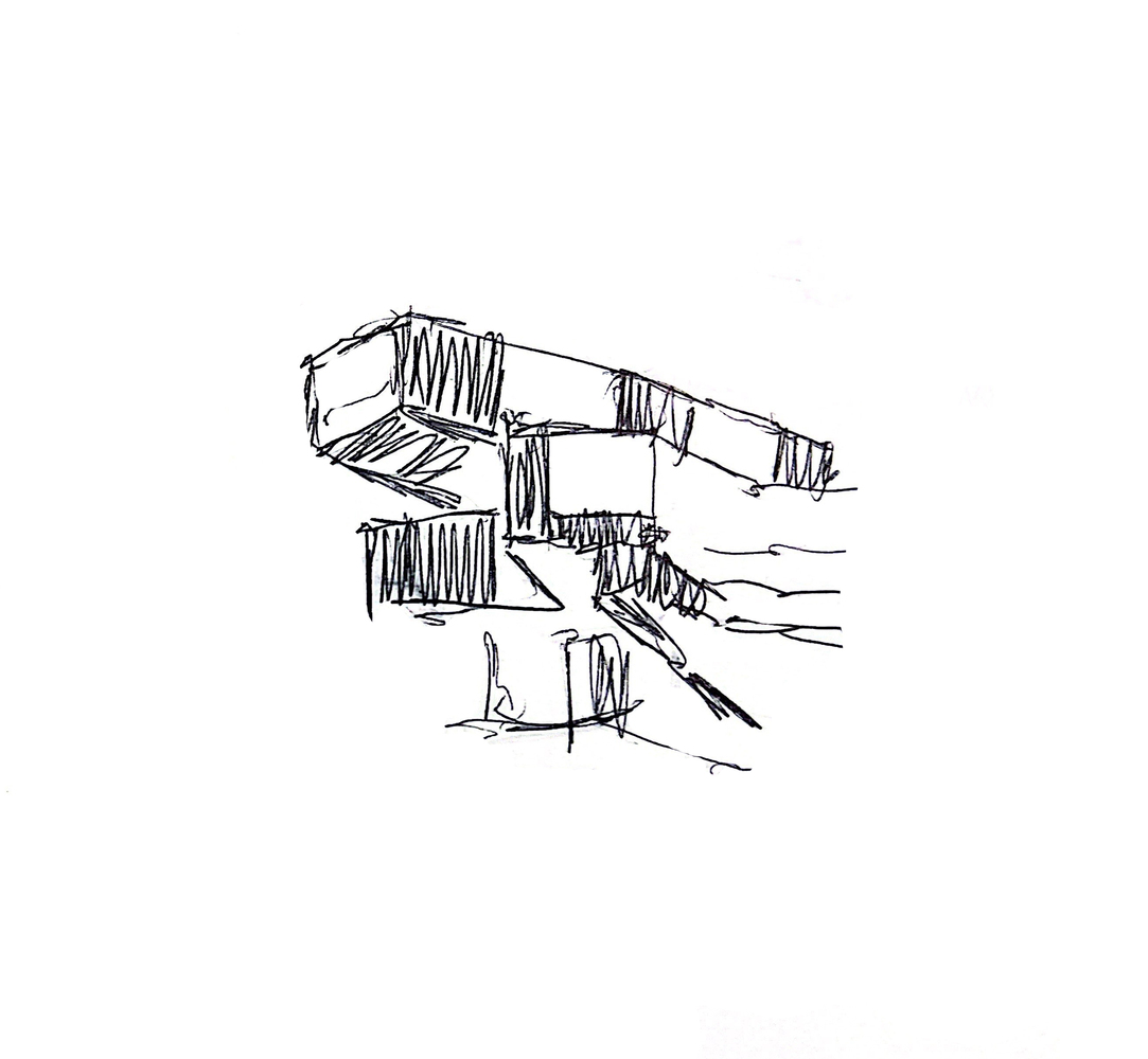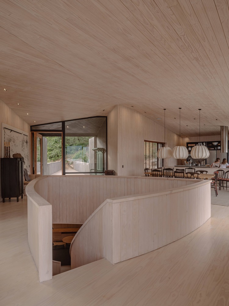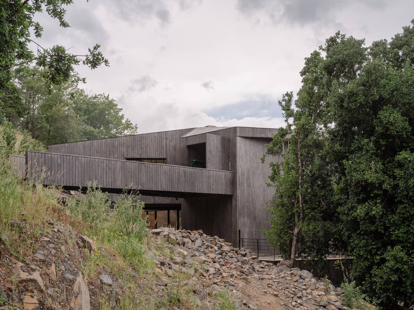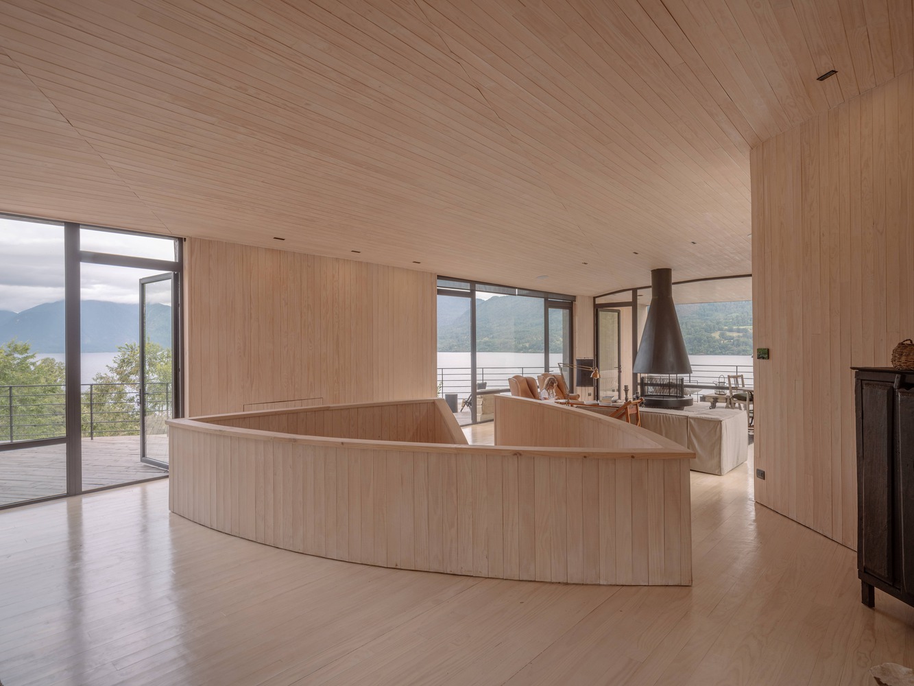 这座住宅围绕着一个中央楼梯来构思设计,这个楼梯连接着地块的顶部和湖面的高度。这个内部楼梯是按照黄铁矿的立方几何结构建造的。这种对项目所有挑战的建筑回应,造就了一个与岩石(场地的主要材料)对话的复杂三层体量,这种情况为建筑结构增添了美感和特色。