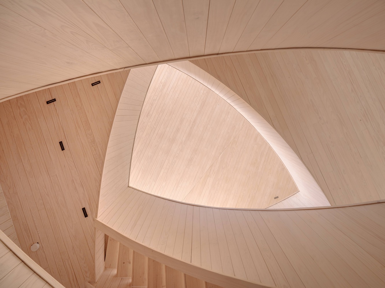 项目采用了更为传统的建造体系,结合了金属、木材和混凝土结构,混凝土仅用于地下部分以防潮。这样一来,每层的体量都比较轻盈,因为不同材料的选择取决于每一层及其在地块上的位置条件。