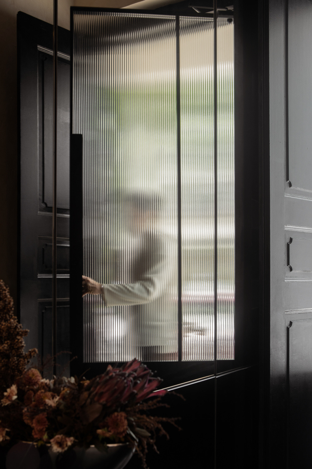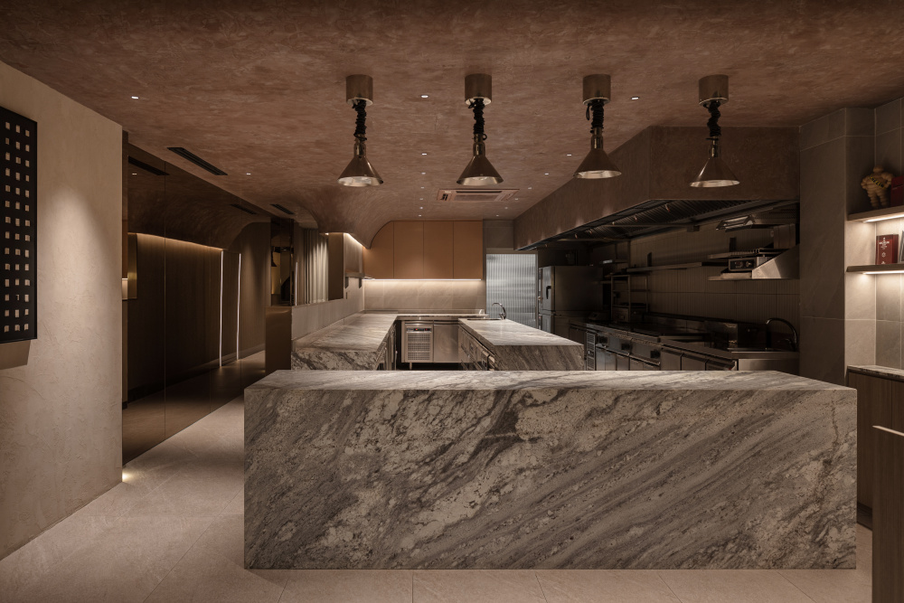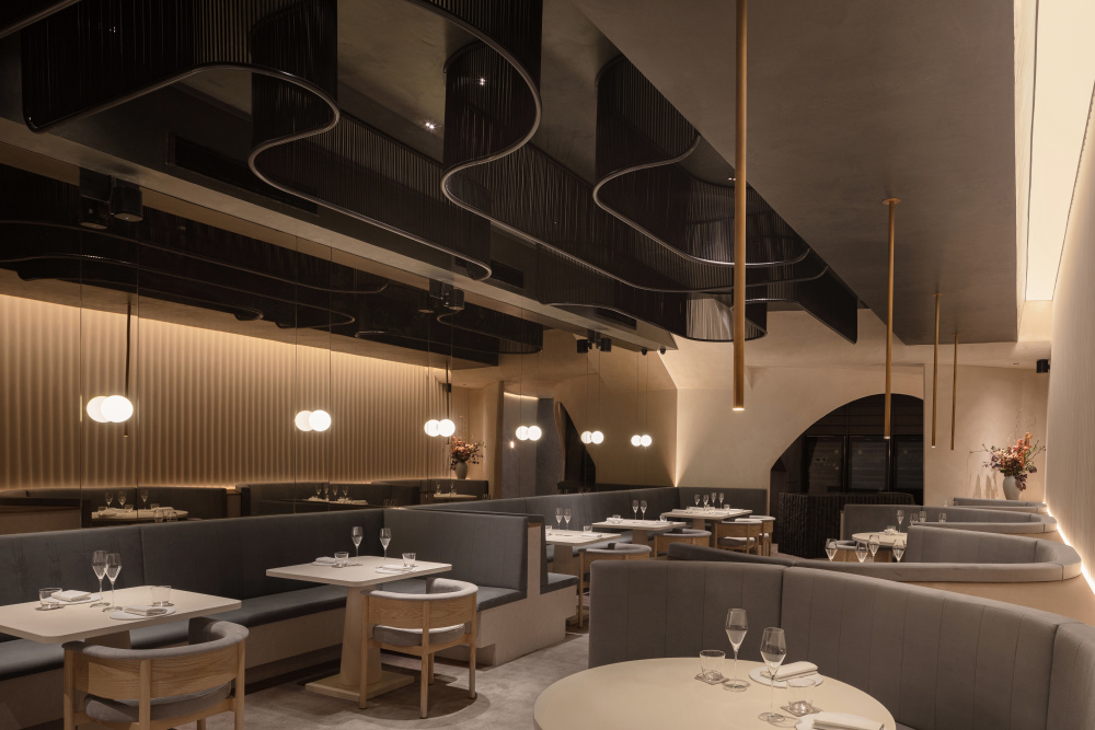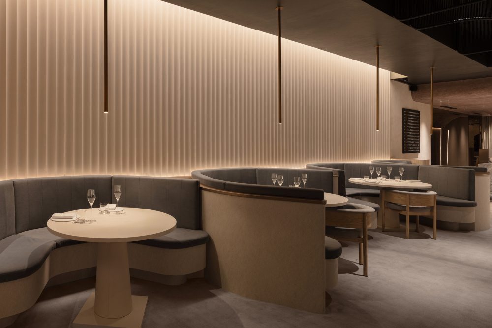 青铜、陶瓷和石材引领着材料的韵律。就连卫生级也遵循着这种基调,镜面走廊和错落有致的灯光交相辉映。每个元素都各司其职,却又不失其独特,无需比食物本身更显突出。