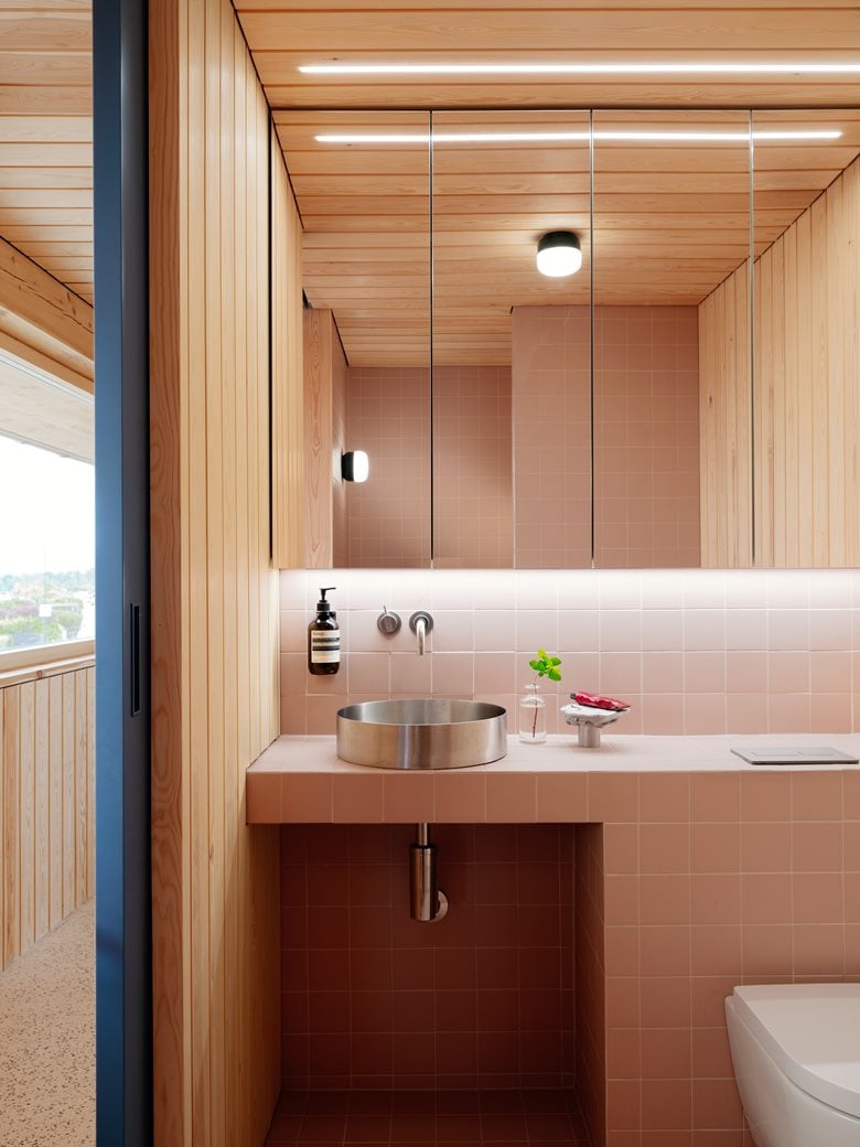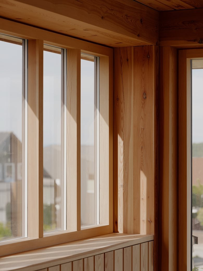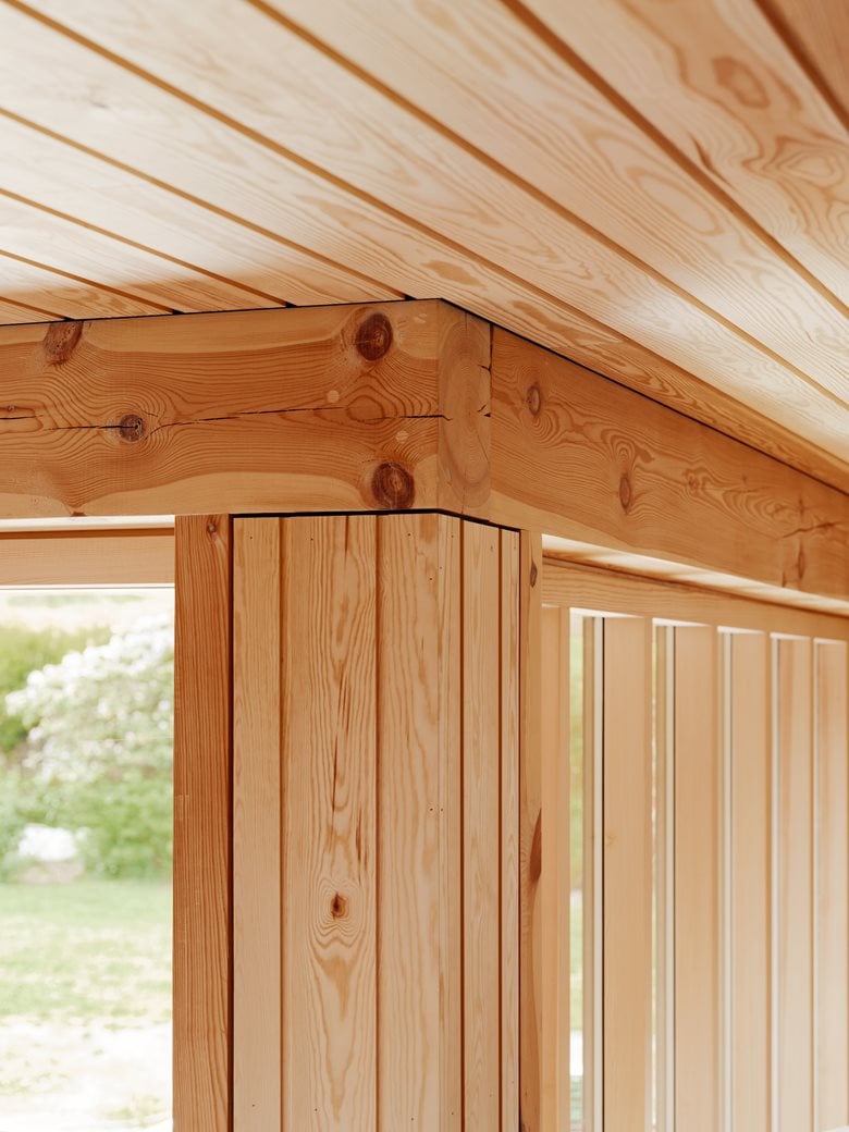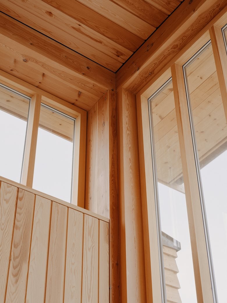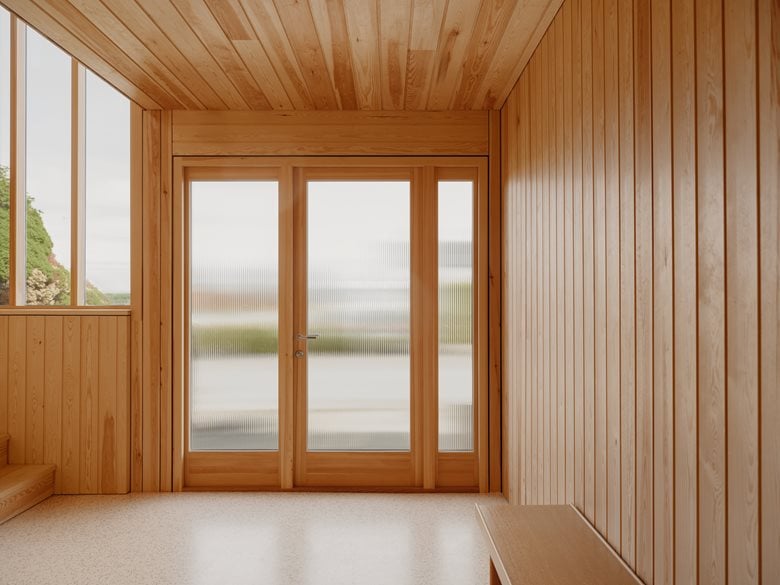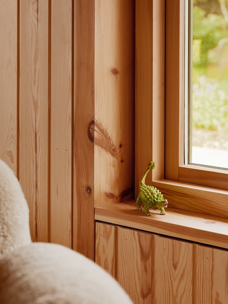 房子内部的材料选择以松木、砖块和水磨石为特色,明显呼应了更南部那些具有 60 年代风格的房屋。