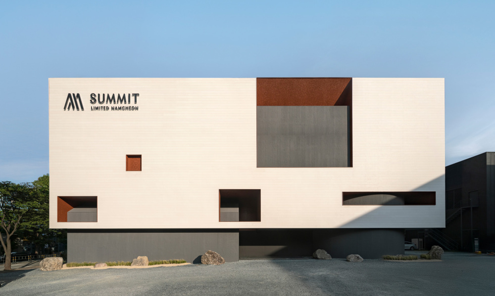 建筑的表皮是 “建筑与城市对话的第一语言”,在韩国 SUMMIT Namcheon 项目中,设计团队以“几何切割与材质碰撞”为核心,通过对白色板材、锈色金属与灰色肌理的精准运用,在城市街角塑造出一处兼具极简主义张力与雕塑感的建筑作品。其设计不仅是对建筑功能的包裹,更是一场关于 “光影、材质、体量” 的立体叙事,为商业建筑的表皮设计提供了 “以形式传递品牌精神” 的优秀范本。