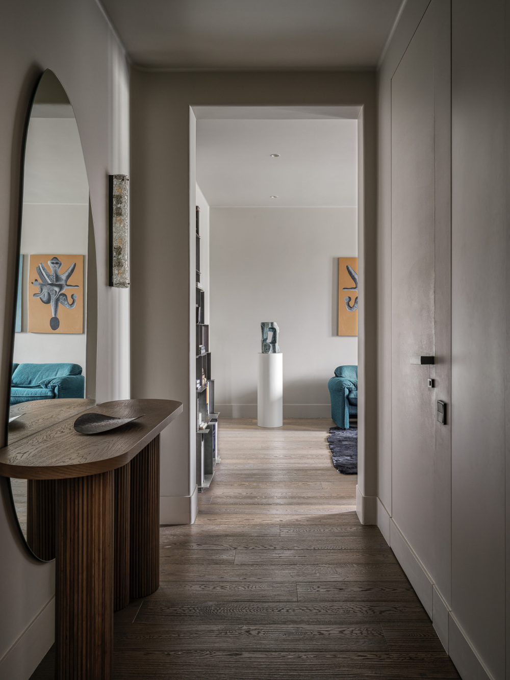 “我身边的所有事物都应当具备可触摸的质感与纯粹的本真。” 这是设计师安德烈・阿加米罗夫(Andrey Agamirov)的设计信仰,而他在莫斯科宗主教池塘(Patriarchal Ponds)历史建筑 7 层打造的 60 平方米公寓,正是这一信仰的立体宣言。在这栋兼具旧地基厚重感与挑高天花板开阔感的建筑中,安德烈以现代极简为骨架,以天然材料的纹理与质感为灵魂,在中性色调的语境里,编织出一场关于 “触摸与本真” 的空间叙事。