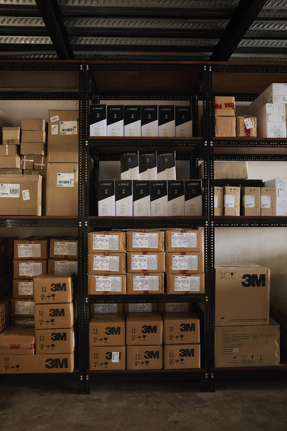 原仓储空间被赋予清晰的功能层级 —— 底层保留车辆出入口与员工区,延续建筑 “服务性” 的原始基因;中央楼梯串联起一层的体验中心与产品展示区,成为空间的 “流动脉络”;顶层则设置 CEO 办公室与会议空间,形成 “从公共到私密” 的有序过渡。这种布局既最大化利用了狭长地块的垂直空间,又通过 “一层一主题” 的叙事,让访客在上下移动中感受空间的递进式变化,避免了狭长场地易产生的压抑感。设计中随处可见 “旧物再生” 的巧思 —— 中央楼梯采用 MS 钢构穿孔件组装而成,其构件源自原仓库的货架,经过重新设计后,既保留了工业时代的结构美感,又通过拼插式的组装逻辑注入趣味;建筑内部的外露砖砌、回收碎料压制的砌块,均带着旧仓储空间的时光痕迹,它们不再是 “废弃的残留”,而是成为空间 “可触摸的历史”,让新与旧在材质层面实现深度对话。