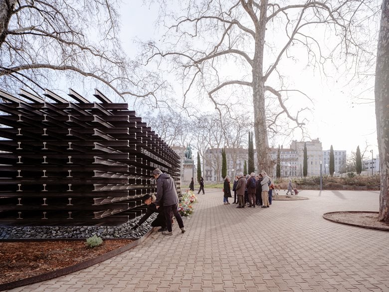 “记忆铁轨” 由建筑师昆廷・布莱辛(Quentin Blaising)与艾丽西亚・博夏特(Alicia Borchardt)设计。该项目的落地,源于 “里昂犹太人大屠杀纪念碑建设协会”(Association pour l’édification d’un Mémorial de la Shoah à Lyon)长达 20 年的不懈努力与坚持,协会的活跃成员及荣誉成员中不乏昔日被驱逐者与奥斯维辛集中营幸存者。2023 年,一场国际设计竞赛催生了这一作品 —— 它从来自 25 个国家的 96 份提案中脱颖而出。最终落成的纪念碑极具视觉冲击力:1173 米相互交织的钢轨诉说着一段悲惨往事,而这 1173 米的长度,正对应着里昂与奥斯维辛 – 比克瑙集中营之间 1173 公里的距离。