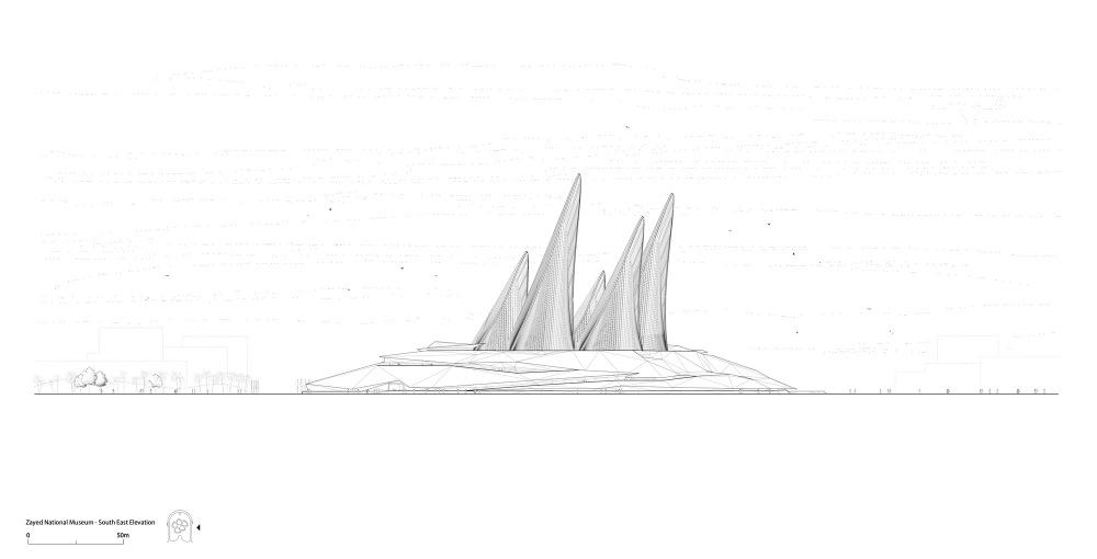在阿布扎比萨迪亚特文化区的核心地带,扎耶德国家博物馆设计以五座流线型钢翼划破沙漠天际线,成为阿联酋文化身份的全新地标。这座由福斯特建筑事务所操刀的国家博物馆,以开国元勋谢赫·扎耶德·本·苏丹·阿勒纳哈扬的精神理念为根基,既追溯着阿联酋从早期定居到文明交融的历史脉络,又以“鹰翼”为象征,将谢赫·扎耶德的绿色愿景与可持续理念,具象为建筑的每一处细节——它不仅是历史的容器,更是沙漠中人与自然共生的典范。