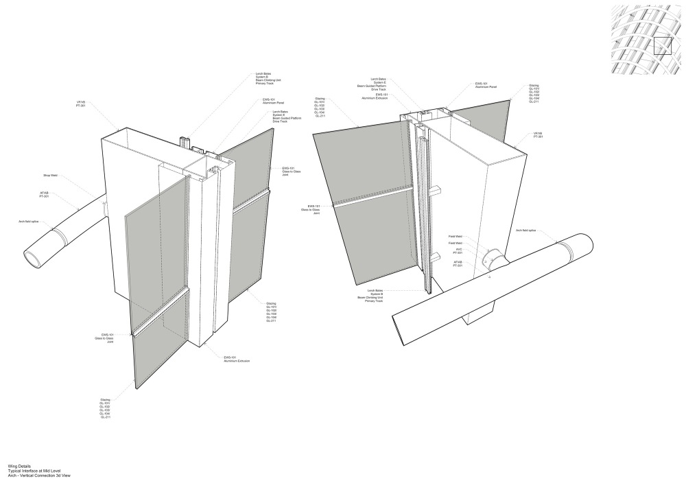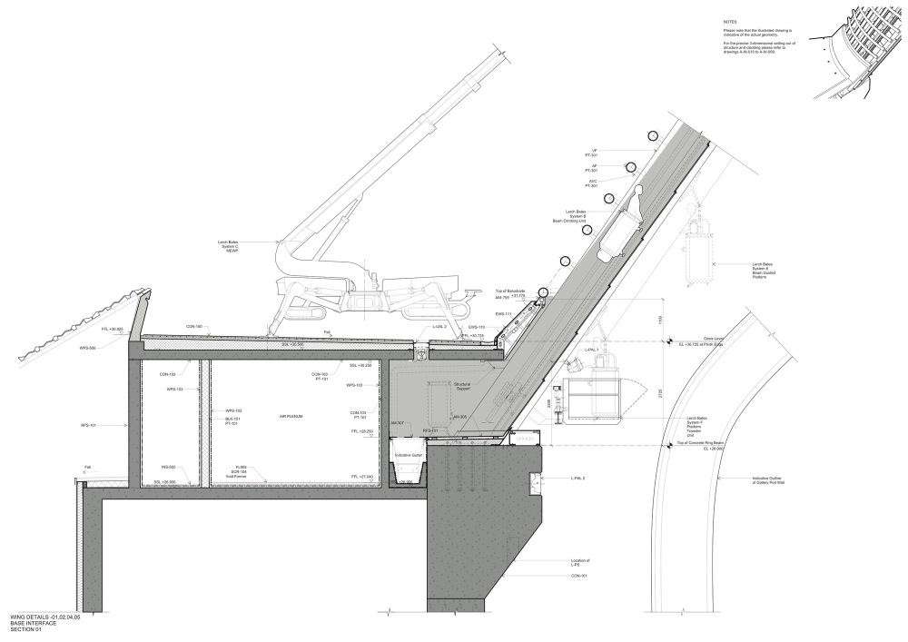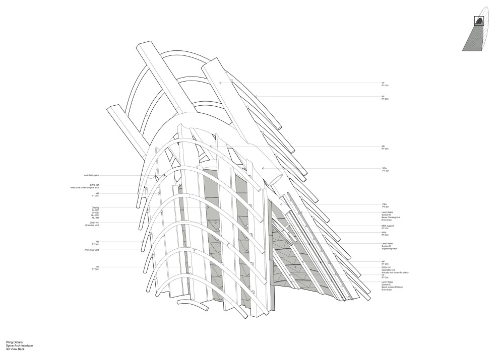 博物馆最具辨识度的五座轻盈钢翼,是“精神象征”与“功能需求”的完美融合。从象征意义而言,钢翼的流线形态呼应了谢赫·扎耶德对传统运动猎鹰的热爱——猎鹰在阿联酋文化中代表着力量与远见,如今这五座钢翼已成为城市天际线上极具辨识度的地标,彰显着国家的精神气质。从场地呼应来看,钢翼的设计精准回应了沙漠环境的挑战。阿联酋炎热干燥的气候,对建筑的通风、遮阳与降温提出了极高要求,而钢翼并非单纯的装饰性造型,而是建筑环境系统的核心组成部分,承担着“热烟囱”的关键功能,为公共空间输送凉风,实现了“形态服务于功能”的设计逻辑。与钢翼形成对比的,是隐匿于覆土丘体中的主体功能空间。丘体外立面采用纹理丰富的多面饰面板,抽象还原了阿联酋的地貌轮廓,让建筑从视觉上与沙漠环境融为一体;而覆土结构本身如同天然的隔热屏障,有效阻隔太阳辐射热,避免室内温度过高,这种“以地为盾”的设计,是对沙漠传统人居智慧的当代诠释。