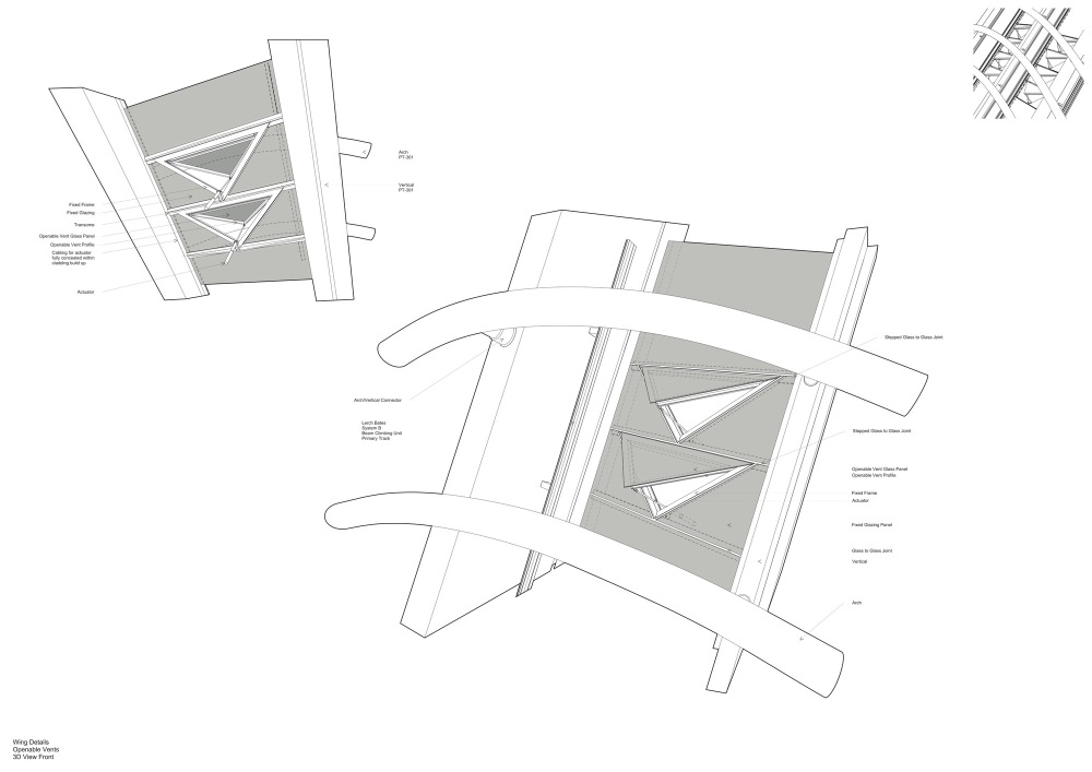 扎耶德国家博物馆的核心亮点,在于其“被动式可持续设计”的极致运用——设计团队没有依赖高能耗的机械系统,而是借助自然原理,构建起一套完整的“通风、降温、采光”生态体系,让建筑在沙漠环境中实现高效节能。自然通风系统的运作堪称精妙:钢翼塔顶的通风口,借助建筑背风面的负压效应与翼尖聚热产生的热压作用,形成“热烟囱效应”,将中庭的热空气顺利排出;与此同时,深埋地下的管道对吸入的空气进行自然降温,冷却后的空气再通过底层通风系统送入中庭,实现了“无需电力的自然通风与降温”。这套系统不仅降低了建筑能耗,更让室内空间始终保持舒适的温度与新鲜空气。自然光的利用同样精准高效。钢翼表面的玻璃幕墙将自然光引入下方展厅,且每一组幕墙的透光率均可独立调节;钢翼塔楼采用三层夹胶玻璃幕墙,配合夹层内嵌的高密度金属网,以及舱体展厅顶部的电致变色玻璃天窗,能够根据室外光照强度自动调节透明度与进光量,既满足了展厅的照明需求,又避免了强光对文物的损害,实现了“自然光与文物保护的平衡”。