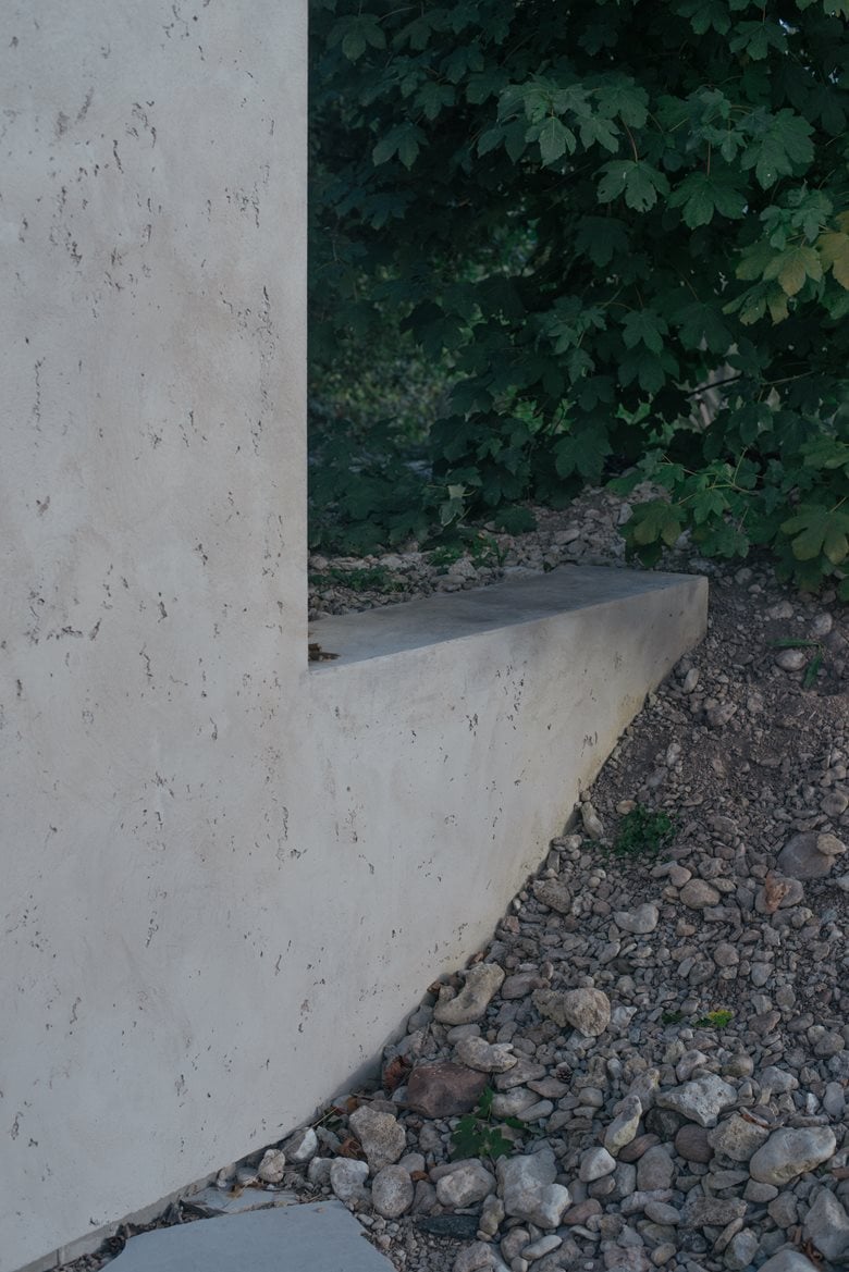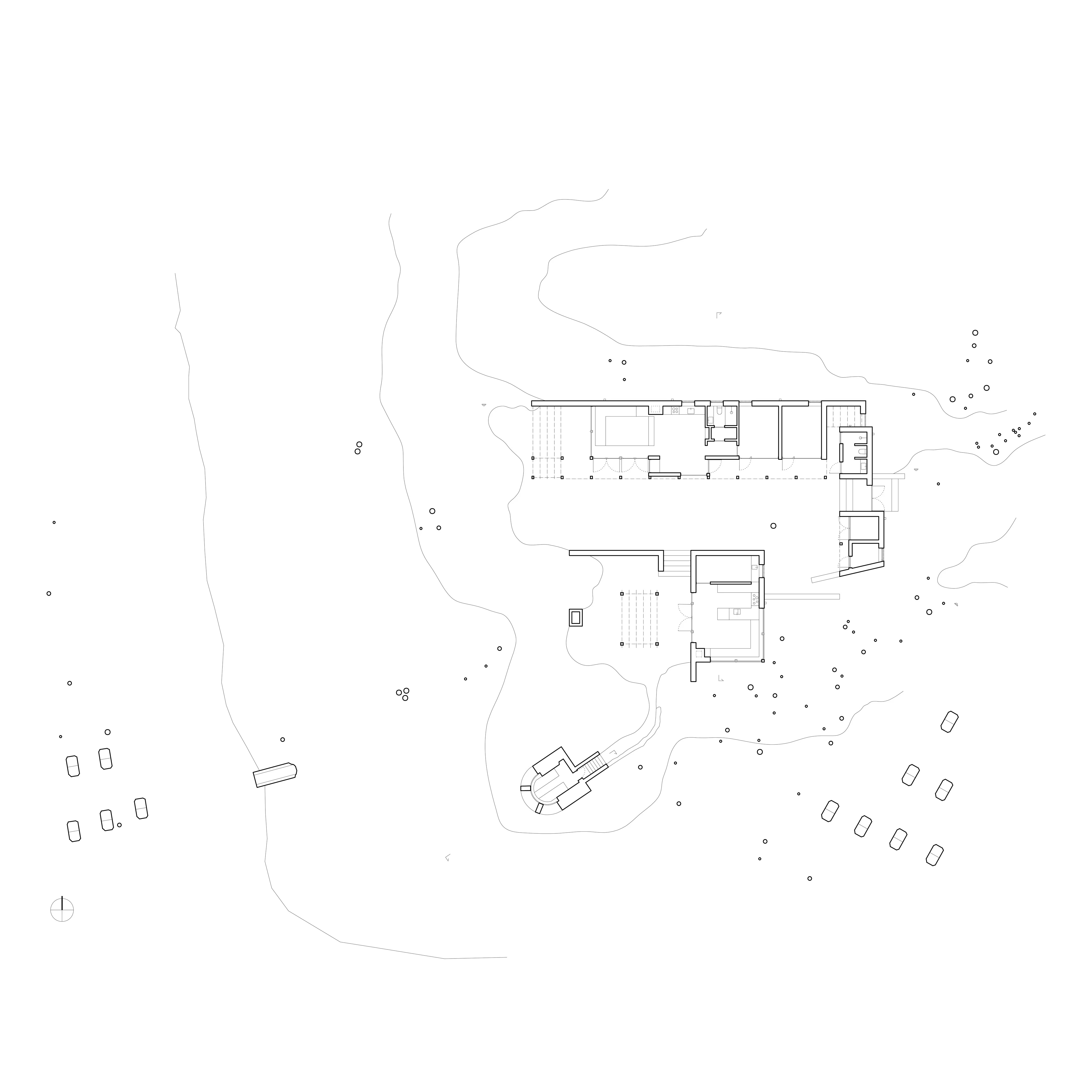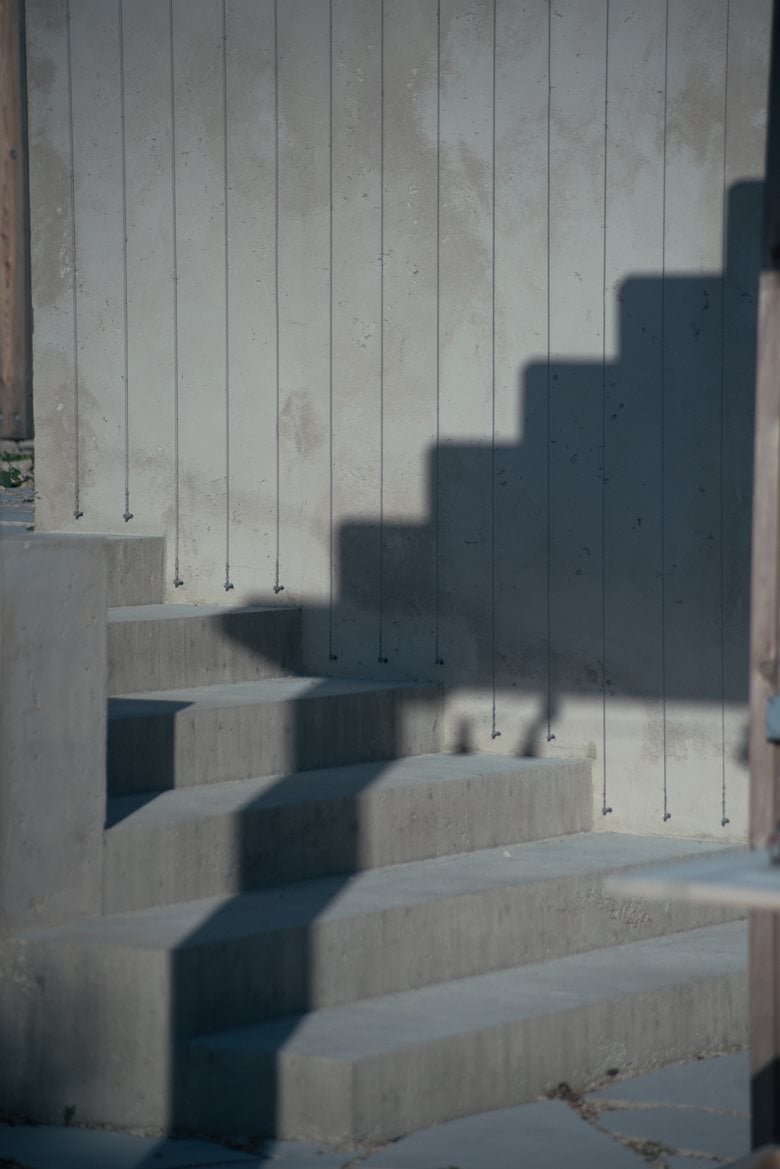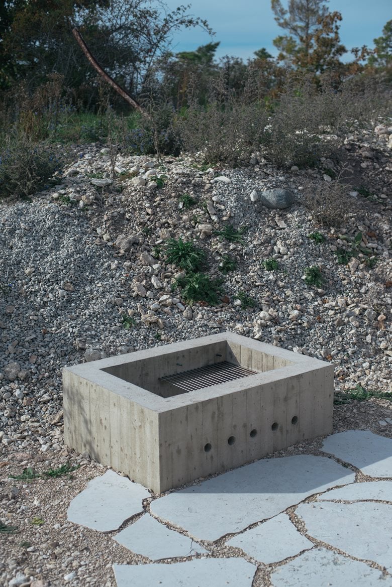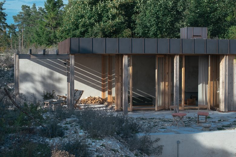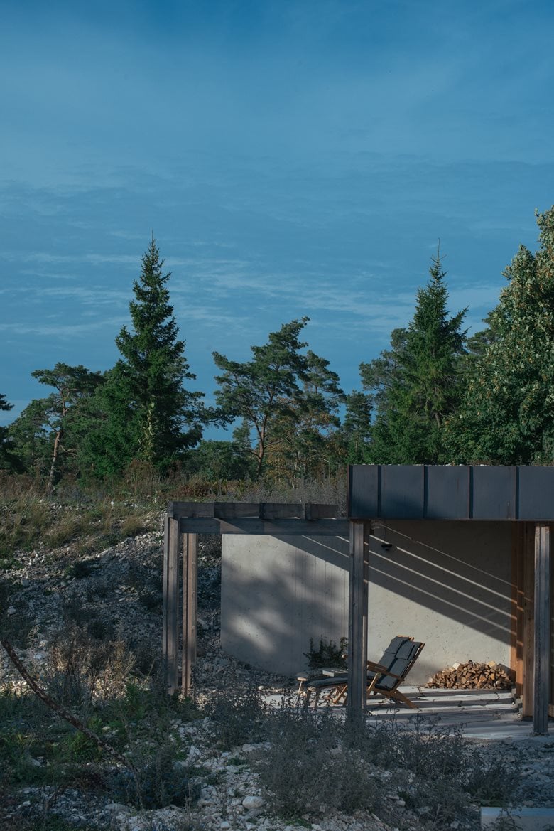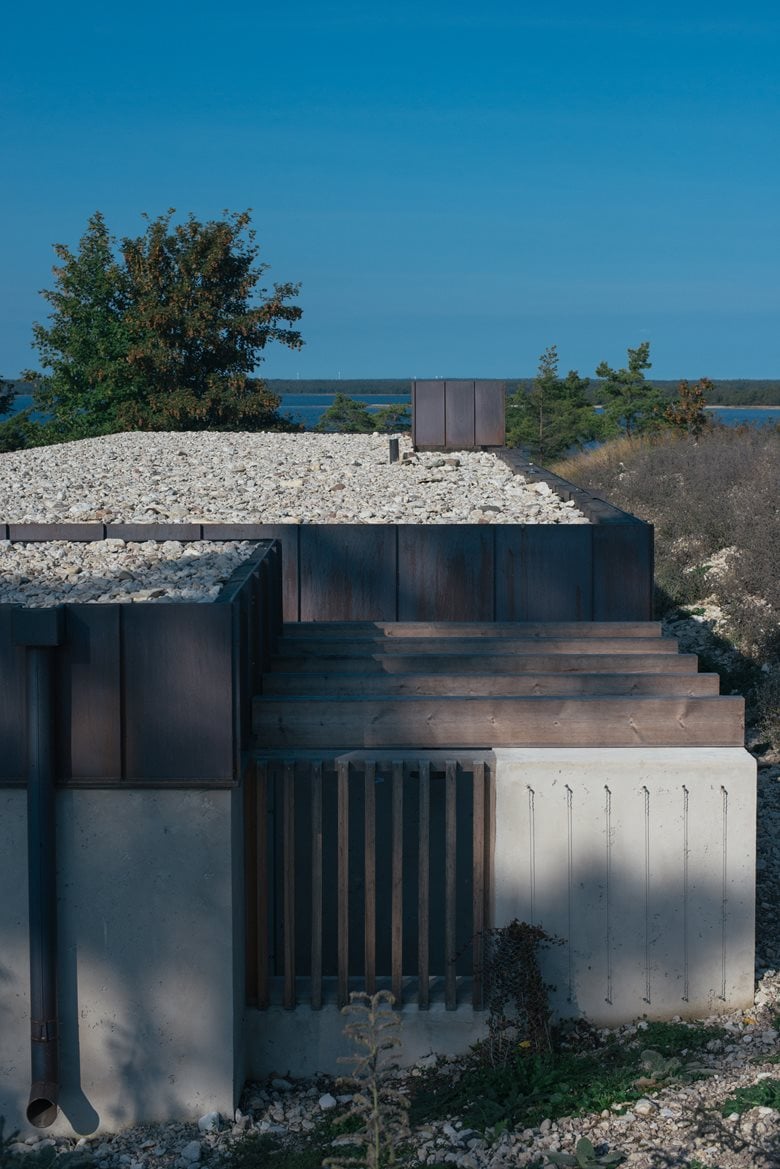 新增的建筑与现存的地堡共同构成了梯田式的外部空间,在场地内形成一个庭院。庭院中央生长着一棵孤零零的树,让这个空间仿佛小村庄里的小广场。房屋的平顶覆盖着场地周边特有的砾石。在军队到来之前,这里曾是哥特兰岛最大、最繁荣的石灰岩采石场之一。此地被自然环绕,白天哥特兰的阳光灿烂地照耀着它,夜晚则沐浴在月光之下。