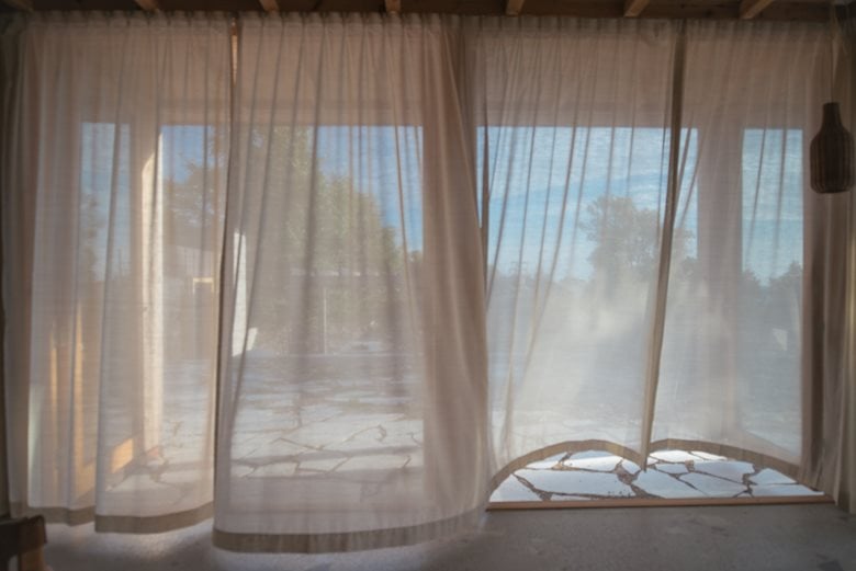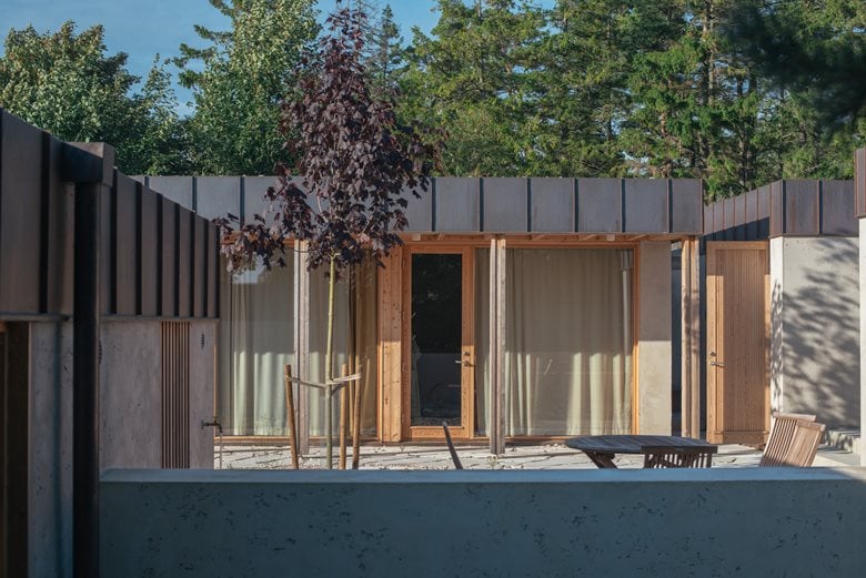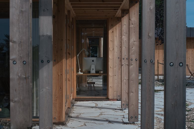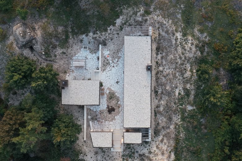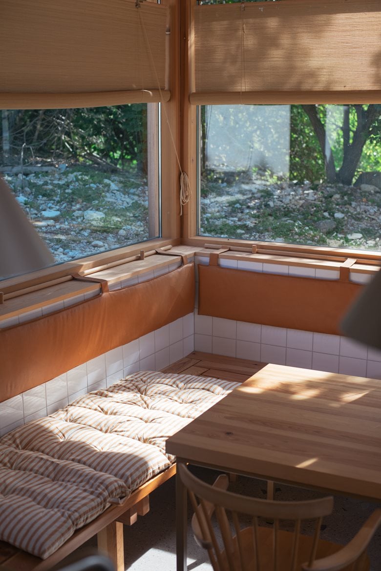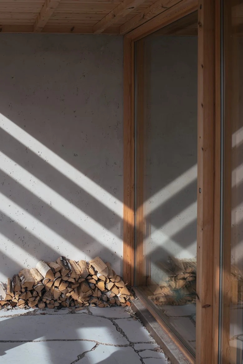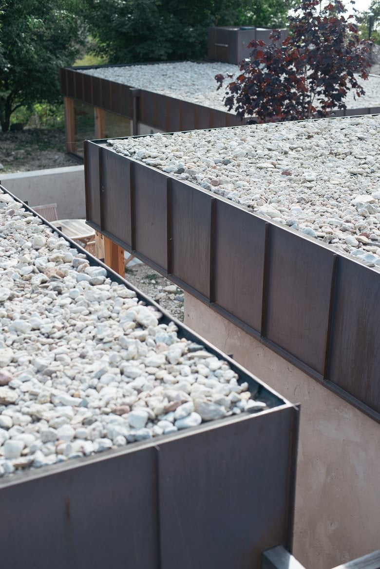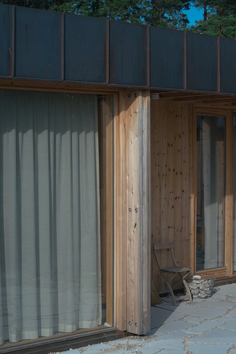 新增的建筑与现存的地堡共同构成了梯田式的外部空间,在场地内形成一个庭院。庭院中央生长着一棵孤零零的树,让这个空间仿佛小村庄里的小广场。房屋的平顶覆盖着场地周边特有的砾石。在军队到来之前,这里曾是哥特兰岛最大、最繁荣的石灰岩采石场之一。此地被自然环绕,白天哥特兰的阳光灿烂地照耀着它,夜晚则沐浴在月光之下。