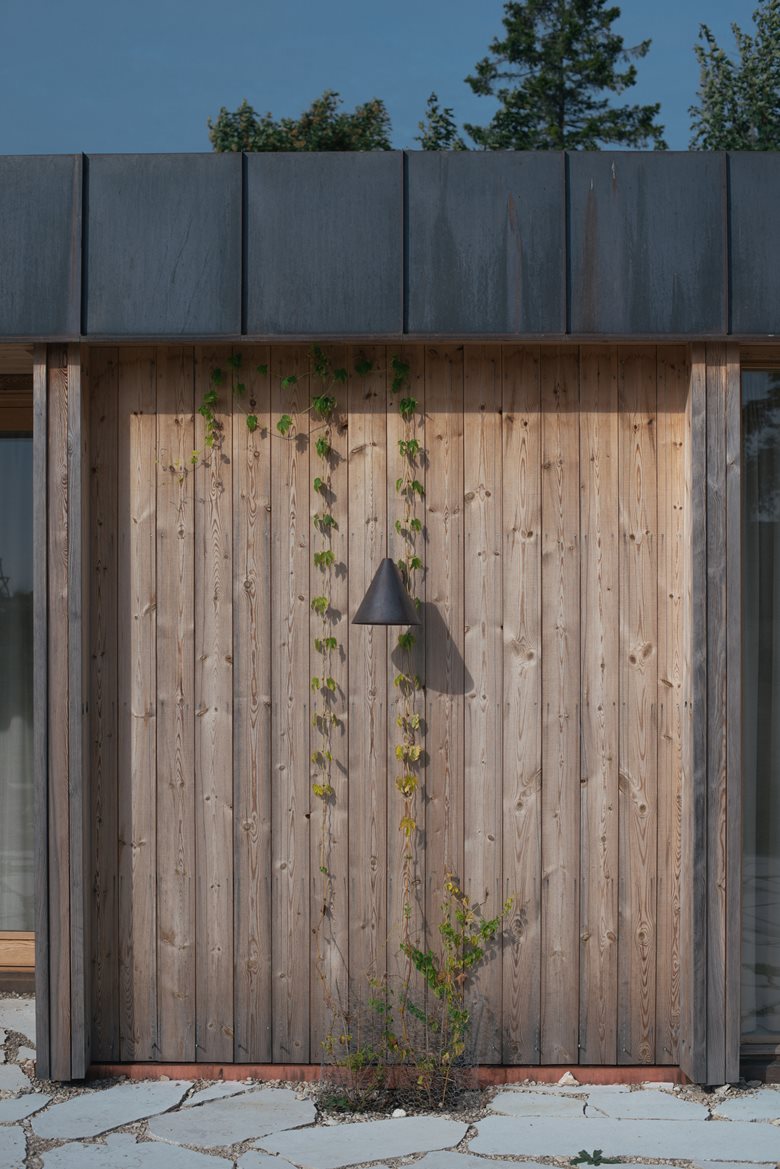319 号一层别墅设计住宅改造建于瑞典哥特兰岛军事活动的遗址之上。它由四座低矮的房屋组成,围绕着一座真实的冷战时期地堡而建,宛如一个隐秘的巢穴,嵌入一座 20 米高的山丘地面,俯瞰波罗的海。将地堡改造并创造新空间的工程,已将这片场地从曾经军事活动留下的石质遗迹,转变为梦幻般的岛屿夏日绿洲,同时又未完全舍弃历史。