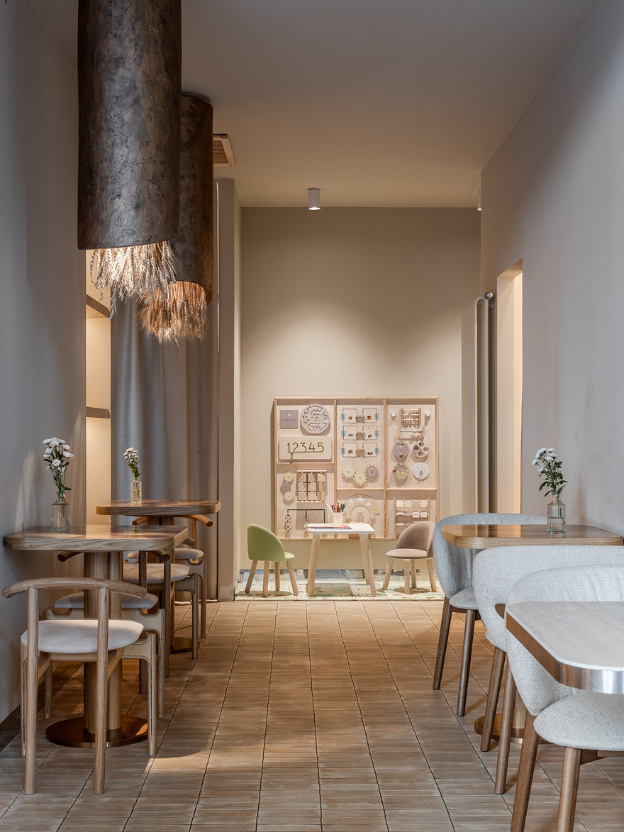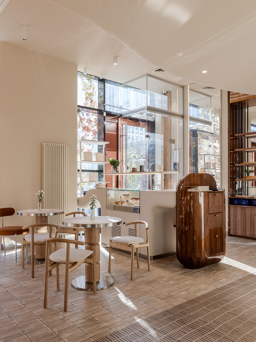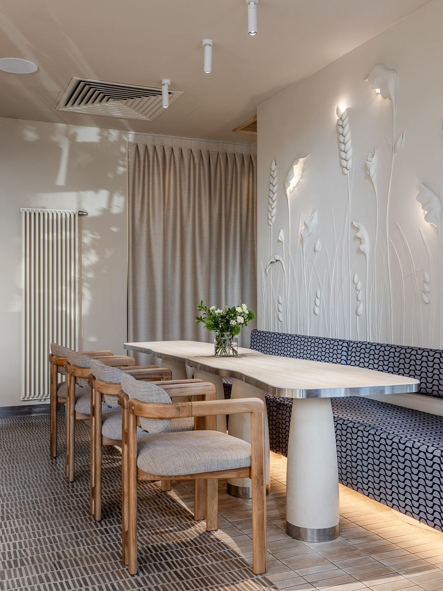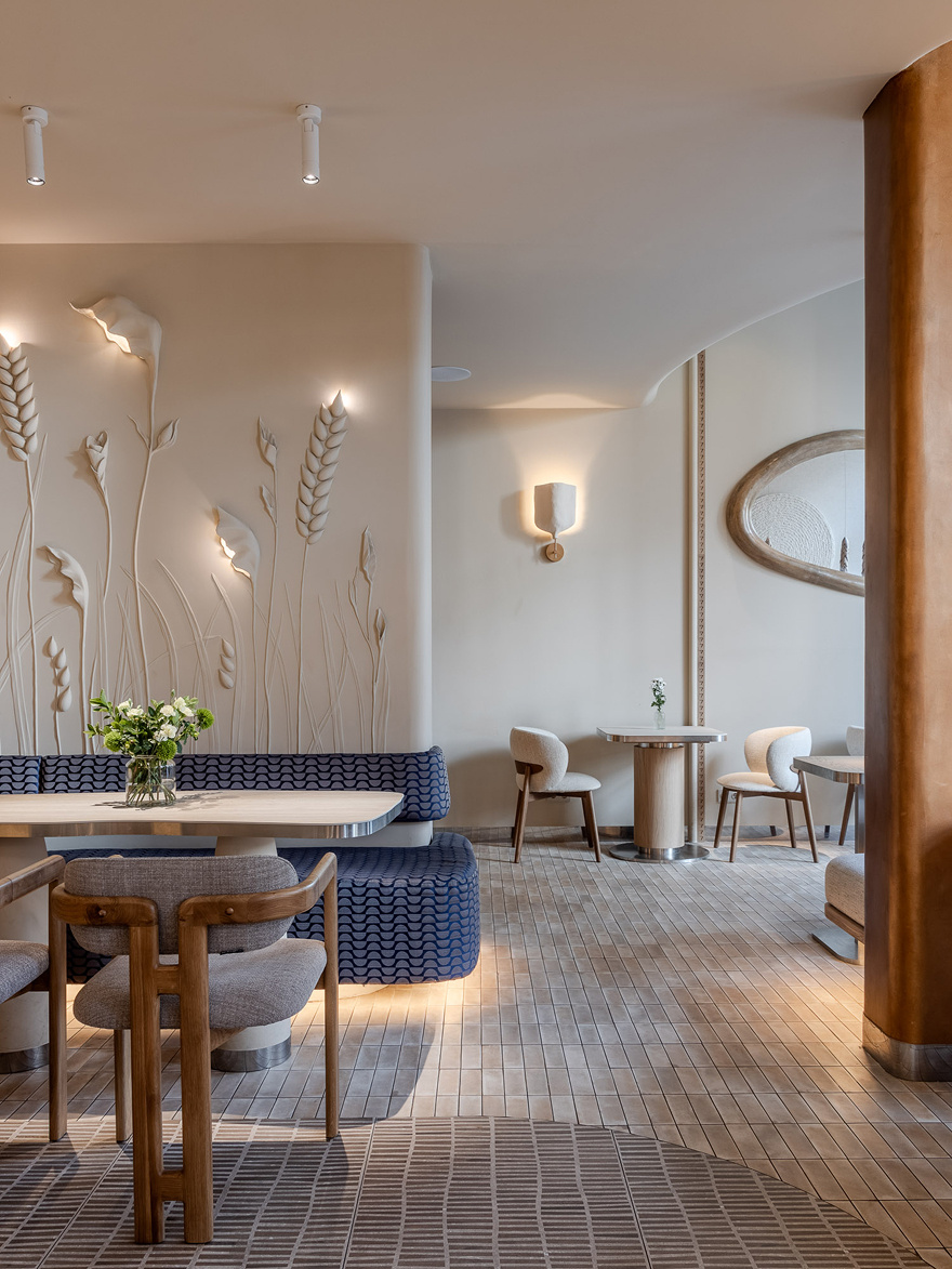 当食客坐在卡座里,指尖触到亚麻软包的纤维,鼻尖裹着面包的麦香,抬眼是烘焙师翻动面团的身影,空间便完成了它的使命:它不是 “精致的餐饮容器”,而是 “烹饪温度的延伸”—— 莱拉・卡玛洛娃工作室用手工的肌理、柔和的光影,让 “用心烹饪” 的温暖,从面包里,流进了空间的每一处细节里。