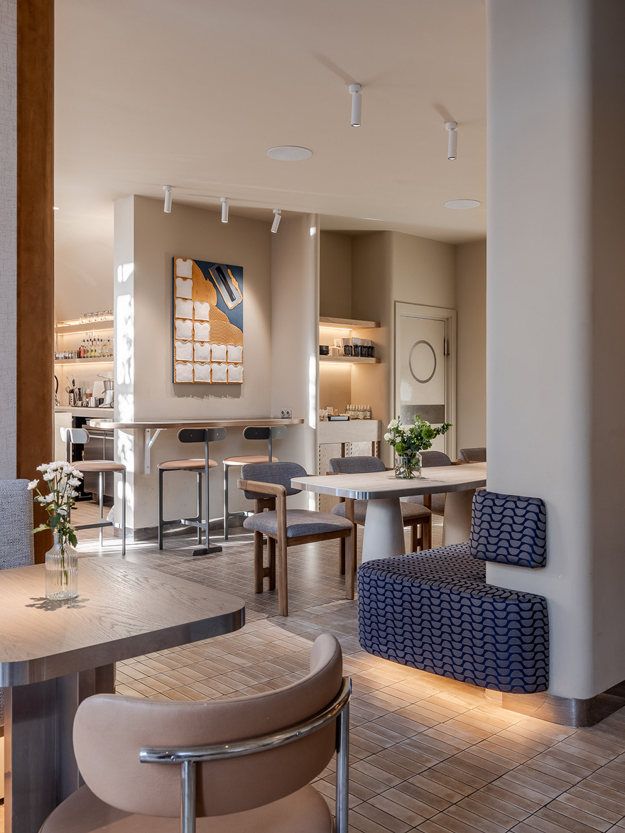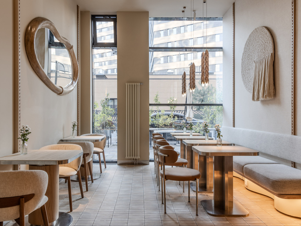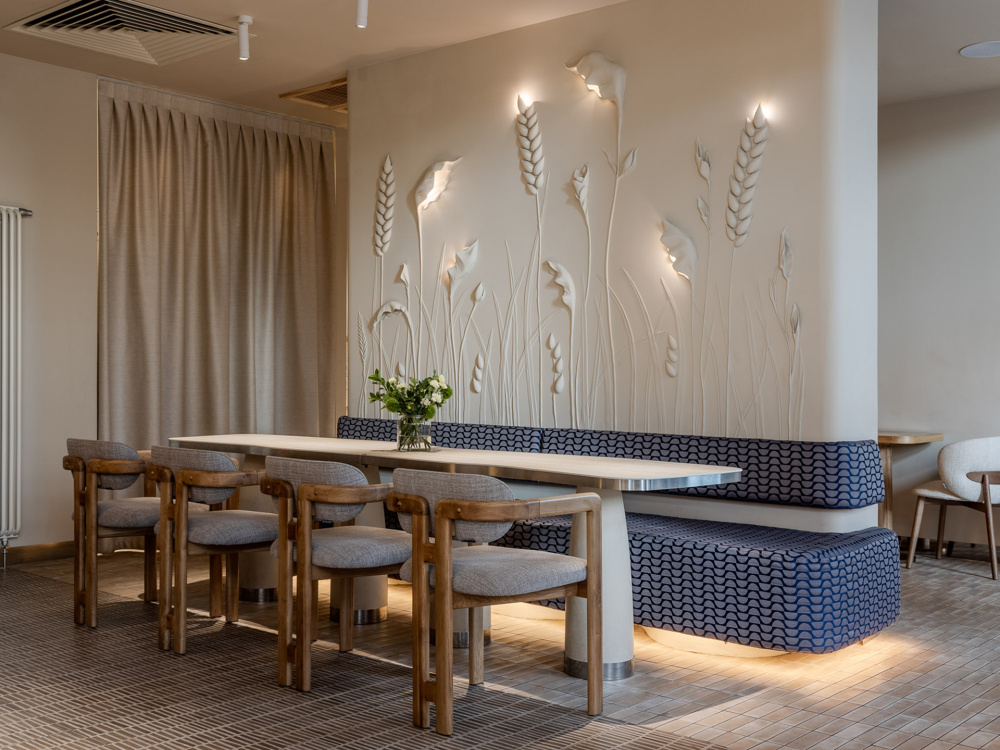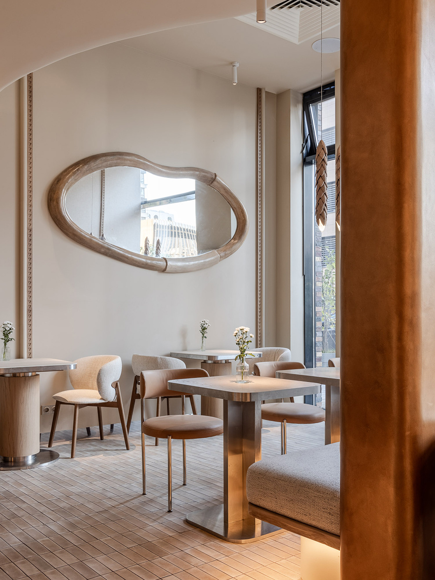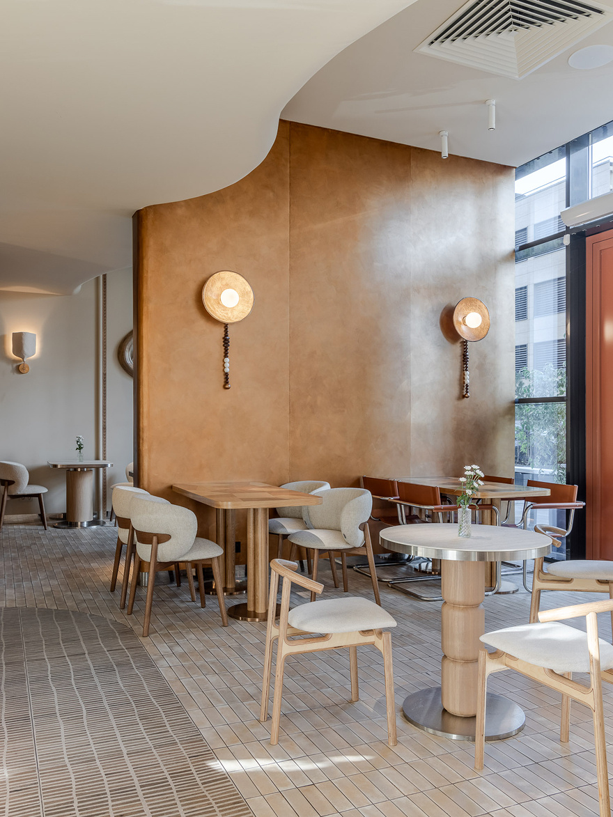 当食客坐在卡座里,指尖触到亚麻软包的纤维,鼻尖裹着面包的麦香,抬眼是烘焙师翻动面团的身影,空间便完成了它的使命:它不是 “精致的餐饮容器”,而是 “烹饪温度的延伸”—— 莱拉・卡玛洛娃工作室用手工的肌理、柔和的光影,让 “用心烹饪” 的温暖,从面包里,流进了空间的每一处细节里。