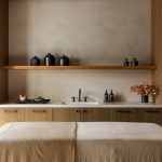 我们特意尝试在这两个区域之间实现视觉上的连续性,使之成为一个单一的体量。这个单一的体量被设想为像一个丛林,在那里你将走向自然,而不是一个驯服的版本向你走来。日照的后部是设计的核心。这意味着自然可以在这里茁壮成长。一个木制的围堰天花板有助于将体积打破到一个简陋的高度,并作为一个桥头堡来打破太阳的刺眼光线,给空间带来一个温暖的色调。这种散射的光线落在战略性地放置的大型花坛上,形成了一个个的休憩区。一面玻璃墙将室内和 “外部 “日光区连接起来。
