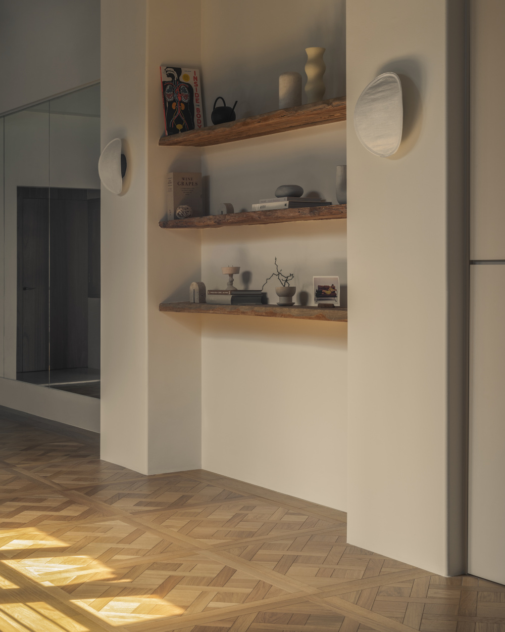 木材、陶瓷和拉丝金属毫无保留地塑造了房间。植物坐在关键时刻,不是作为装饰品,而是作为变化的标志。