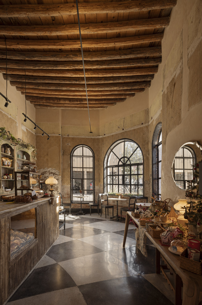 废弃的百年老宅改造法式复古面包店兼工作设计