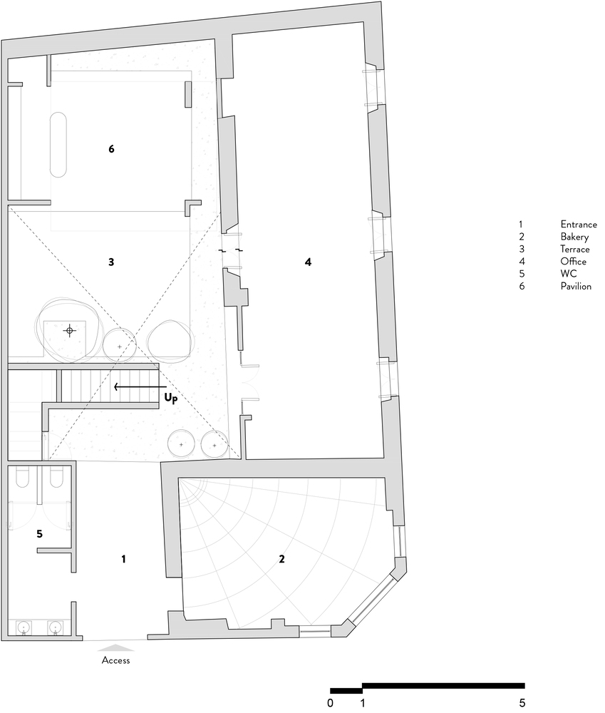 原有庭院中的一个被保留下来,并成为新布局的中心轴。街道的景观被一个白色的雕塑式楼梯部分遮挡,这是 VOID 工作室的标志性设计,楼梯通向一个露台,从那里可以看到周围的穹顶。出入口和设施都进行了重新设计,以满足新的功能需求。