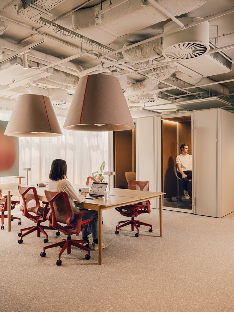 “如今租约期限平均缩短,而传统翻新会产生大量废料,挑战显而易见:当下的办公室既需要灵活性,又要符合环保要求。我们的新总部证明,这两者并非不可兼得。”Mute 董事总经理希蒙・雷赫利克(Szymon Rychlik)表示。模块化建筑的应用大幅加快了装修进程。每个 Mute Modular 单元均预装了线路、照明、插座和通风设备。得益于免工具安装,整个空间仅用两周便完成组装。