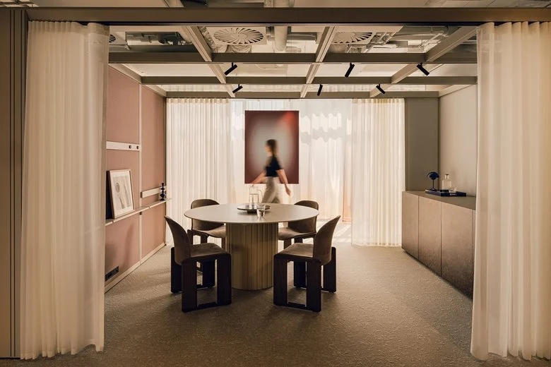该办公室设计总部占地超过 840 平方米,是欧洲首个完全采用模块化系统建造的办公室 —— 这一系统可自由重新配置,且不会产生翻新废料或二氧化碳排放。Mute 的新办公室兼具公司运营中心与 Mute Modular 系统展示厅的功能。从会议室、隔音舱,到休息区和后勤设施,整个空间均由 Mute Modular 系统打造 —— 这是一套全适配办公系统,可随时重新组装,无需工具,且不会产生废料或排放。项目刻意避开了石膏板墙、玻璃隔断等常见装修元素,以尽可能实现可持续性。