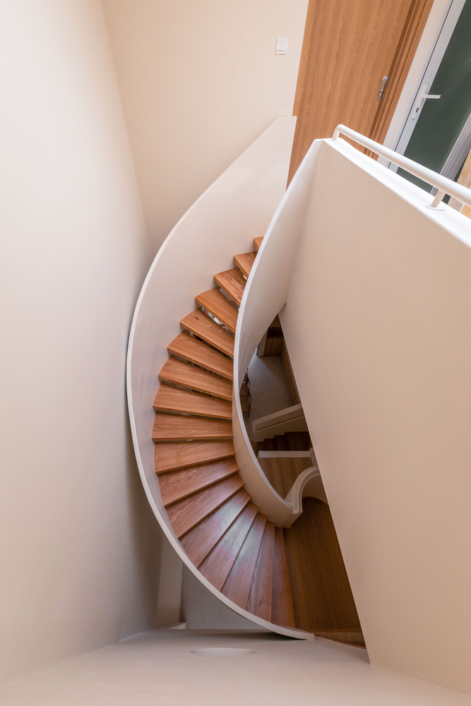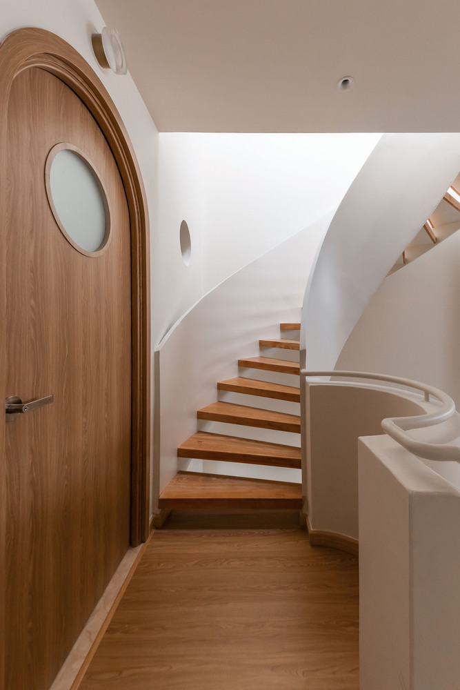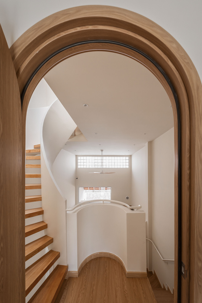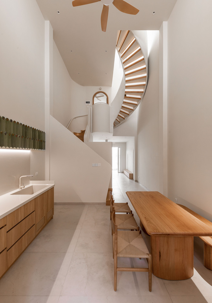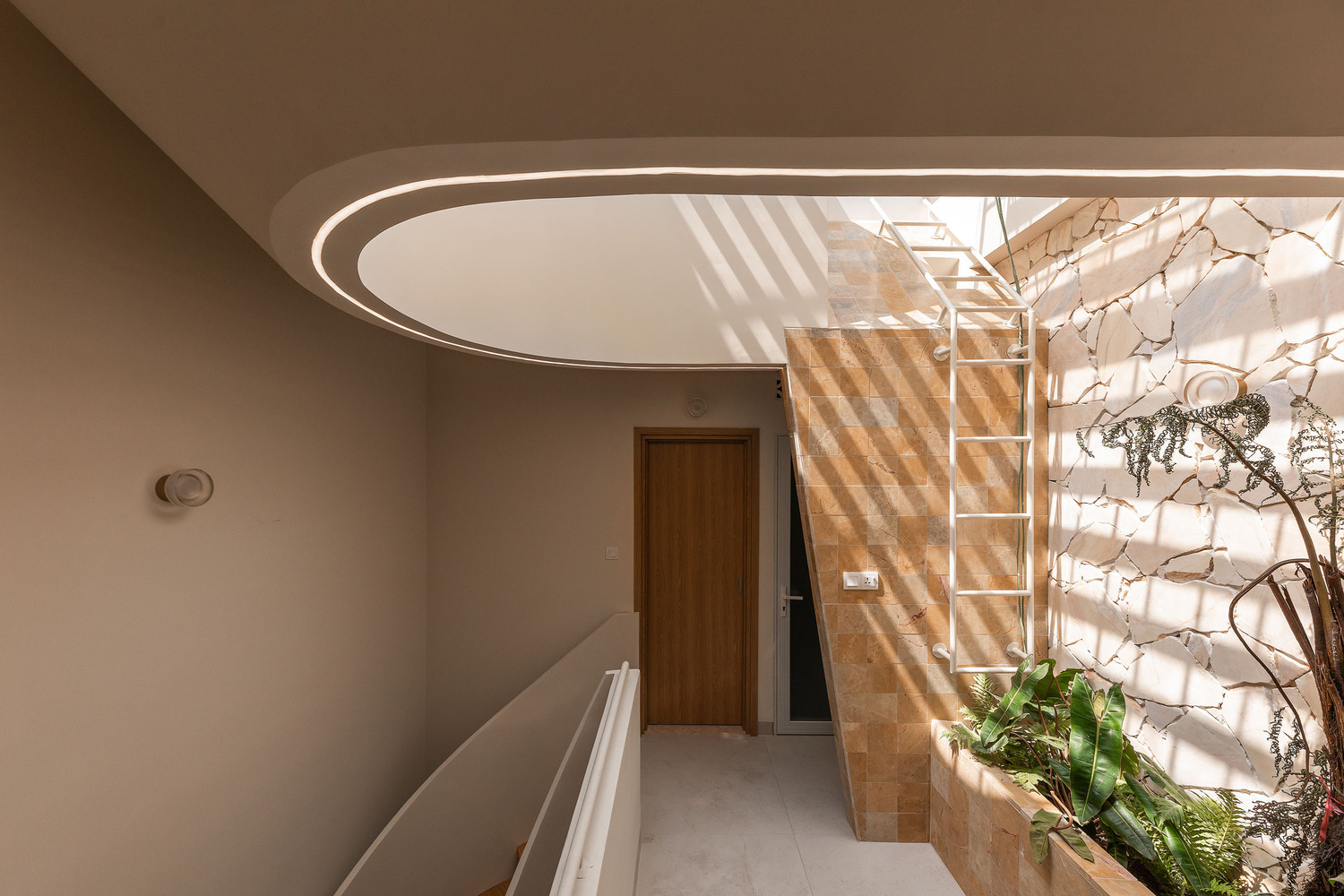 该小型别墅设计外立面灵感来自折纸的褶皱,创造出一种耐人寻味的视觉结构。棱角分明的折叠设计与耐热石砖相结合,非常适合越南的炎热气候,确保了凉爽舒适的室内环境。