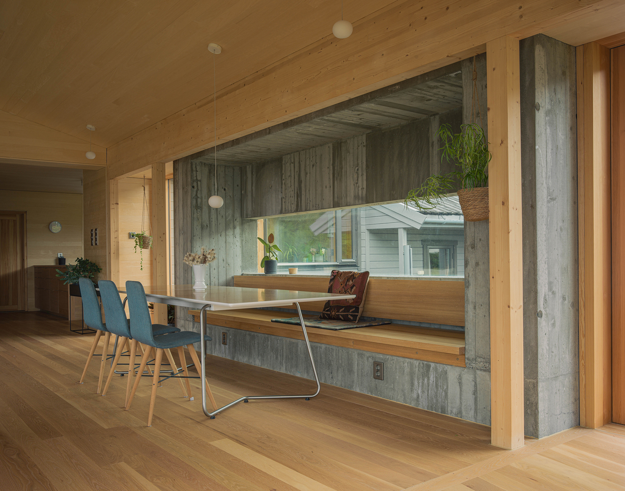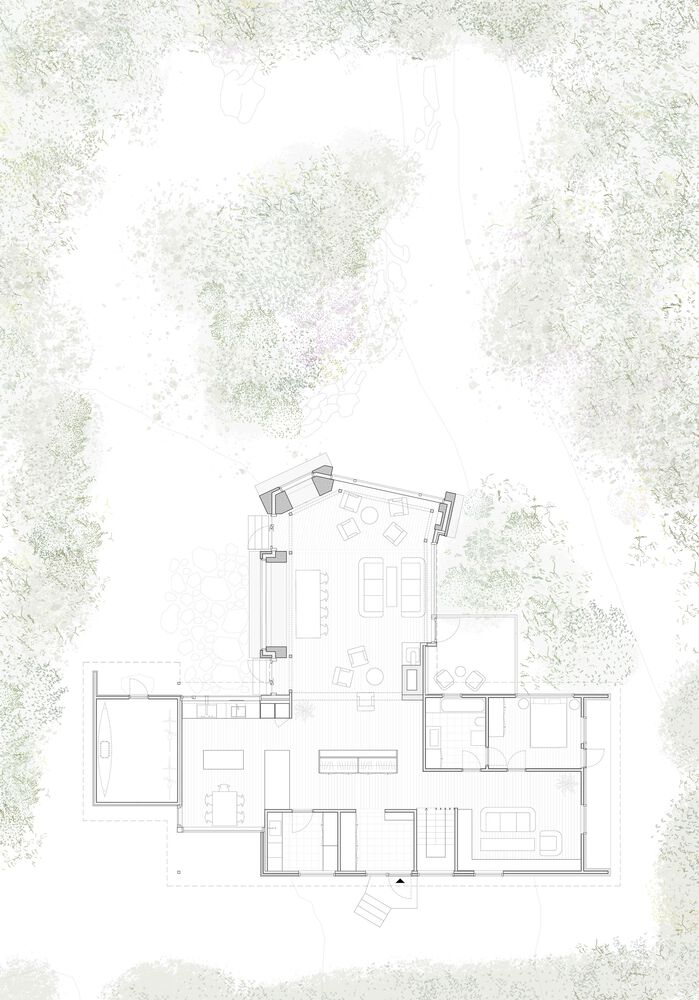 房屋内部采用了高品质、耐用的材料:白杨木镶板、松木窗户和实心橡木地板。这些材料与混凝土相结合,营造出一种永恒而宁静的美学风格,与客户的个人风格相得益彰。该项目旨在增加房屋的持久价值,确保它能为子孙后代所保留。