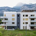 采用垂直铝制翅片和带穿孔铝板遮阳的栏杆设计,可以遮盖干燥架、空调冷凝机组、洗衣机等不整洁的部件。由于铝材坚固耐用,易于维护,所以应选用铝材作为外墙材料。这种独特的立面和阳台组合创造了光影的图案,既反映了建筑简单的系统设计,又隐藏了使用者各种复杂的功能需求。