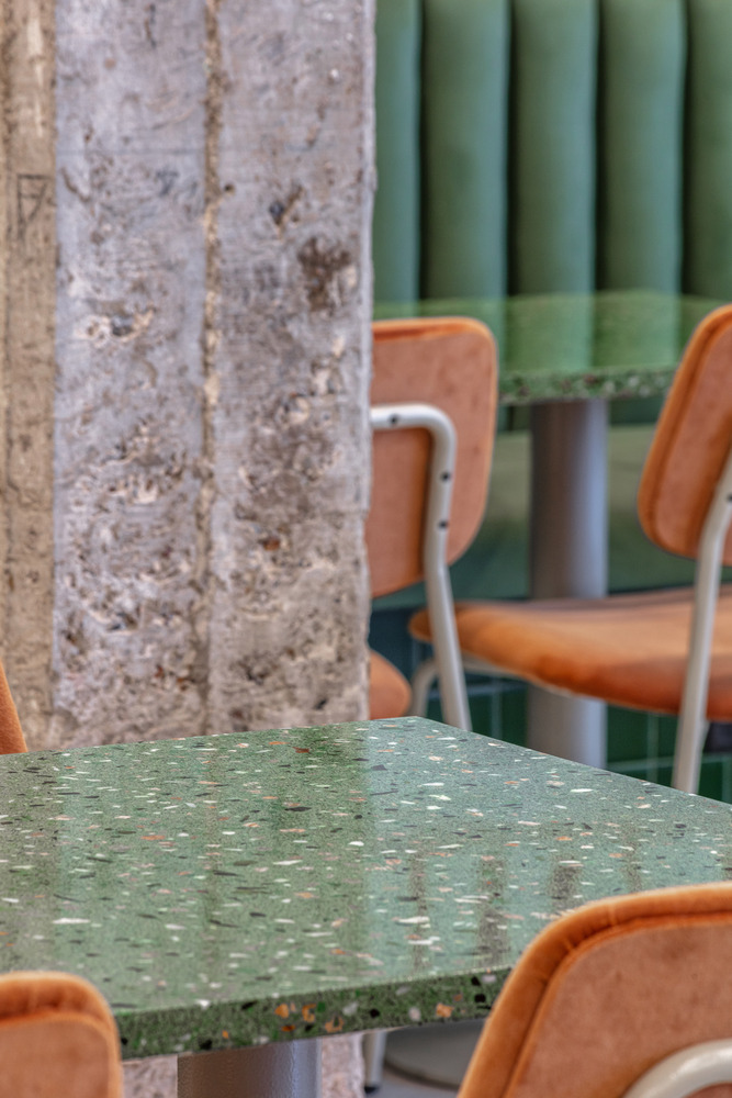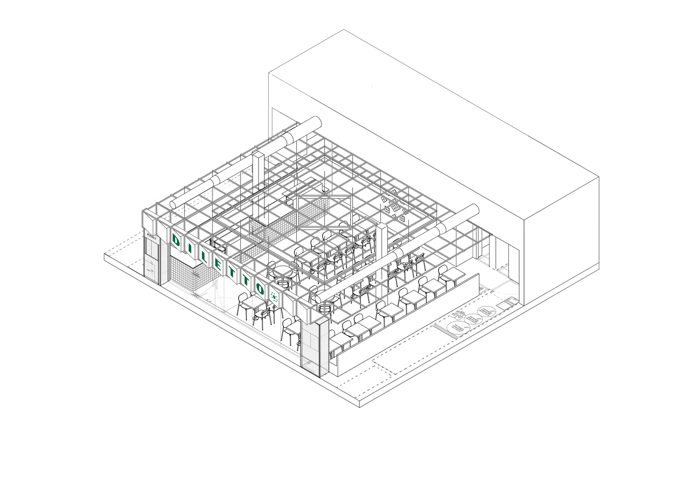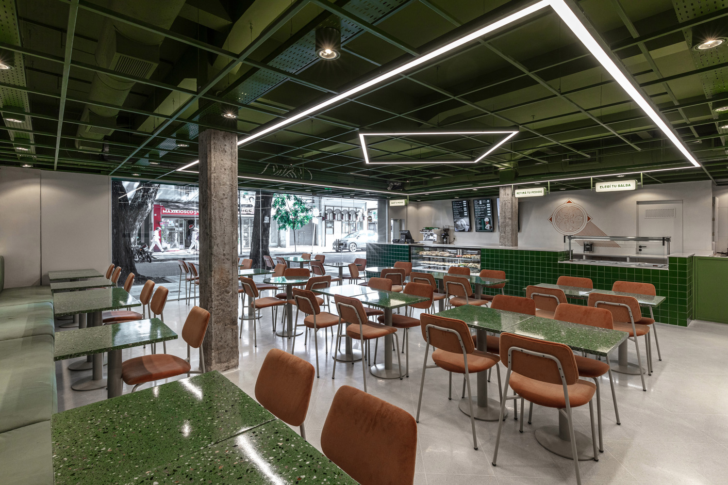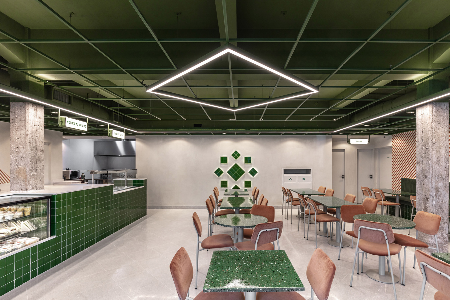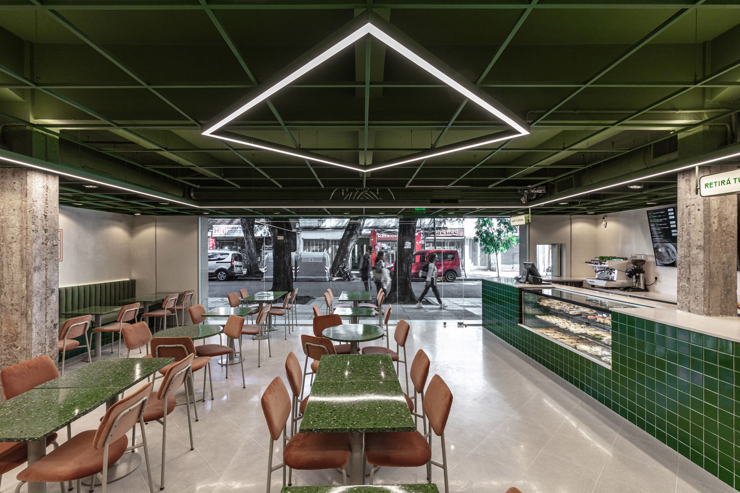Diletto III 餐厅兼酒吧设计是我们工作室为该品牌打造的第三家美食场所。首家门店于 2019 年开业,第二家于 2024 年开业,同年,这家新项目在布宜诺斯艾利斯的贝尔格拉诺街区落成。该品牌始终面临着一项挑战 —— 将新鲜意大利面的传统与快餐的动态体验相融合。
