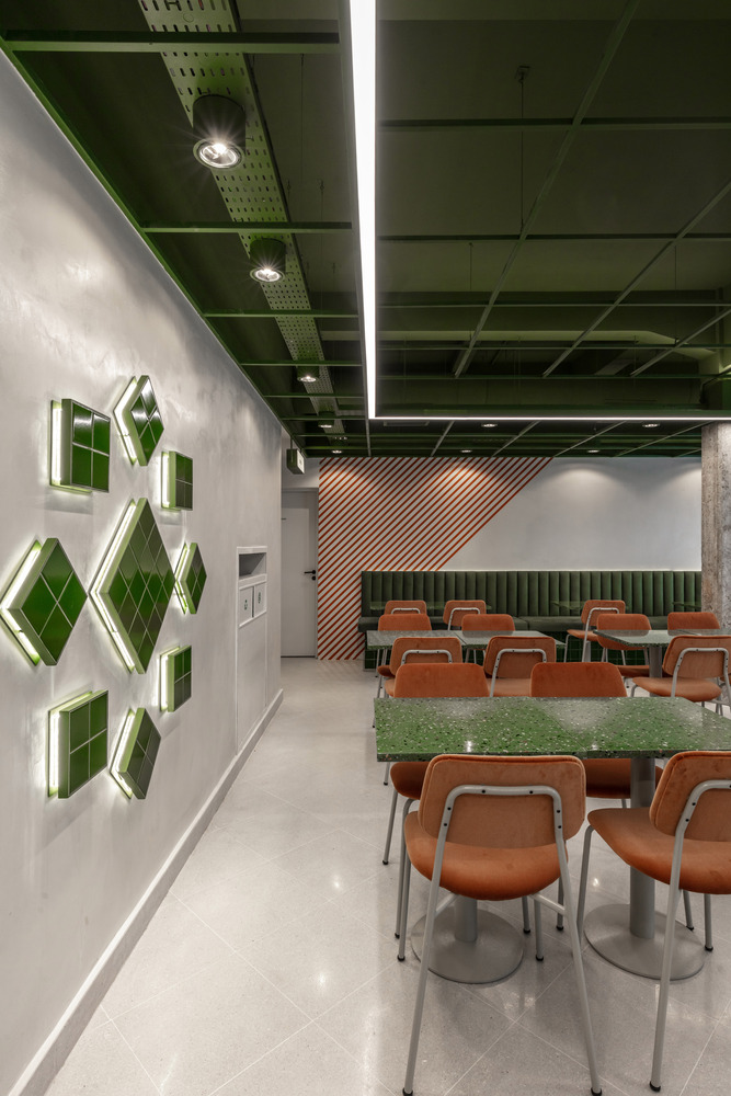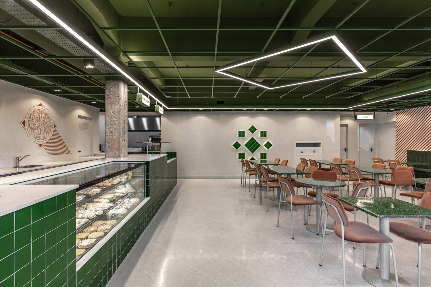 绿网格笼罩快餐慢食剧场烟火温暖的意大利面餐吧设计
