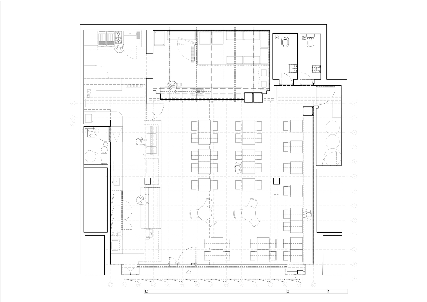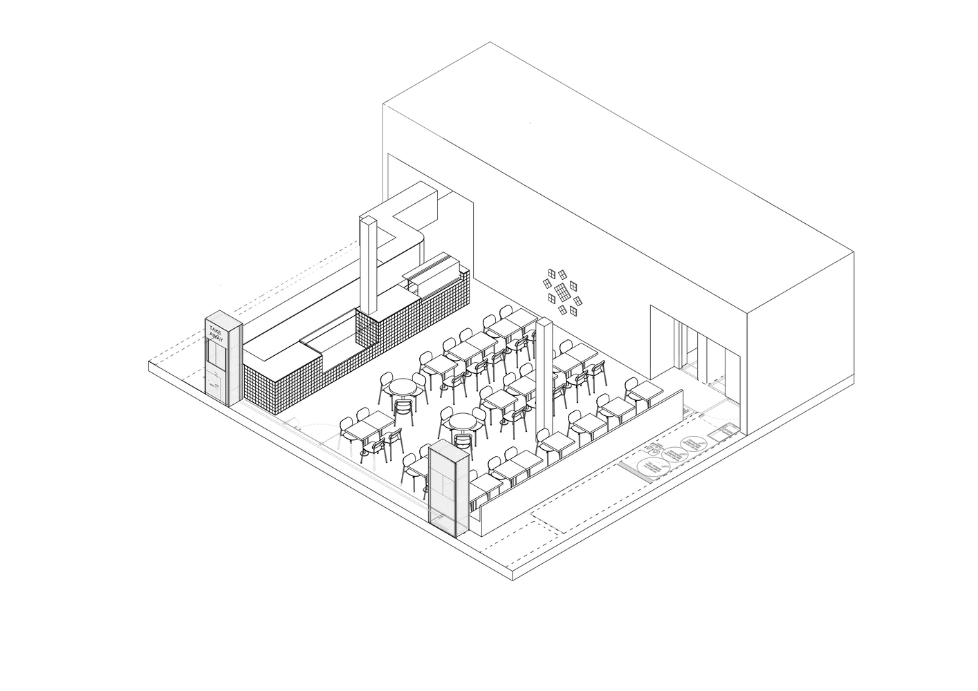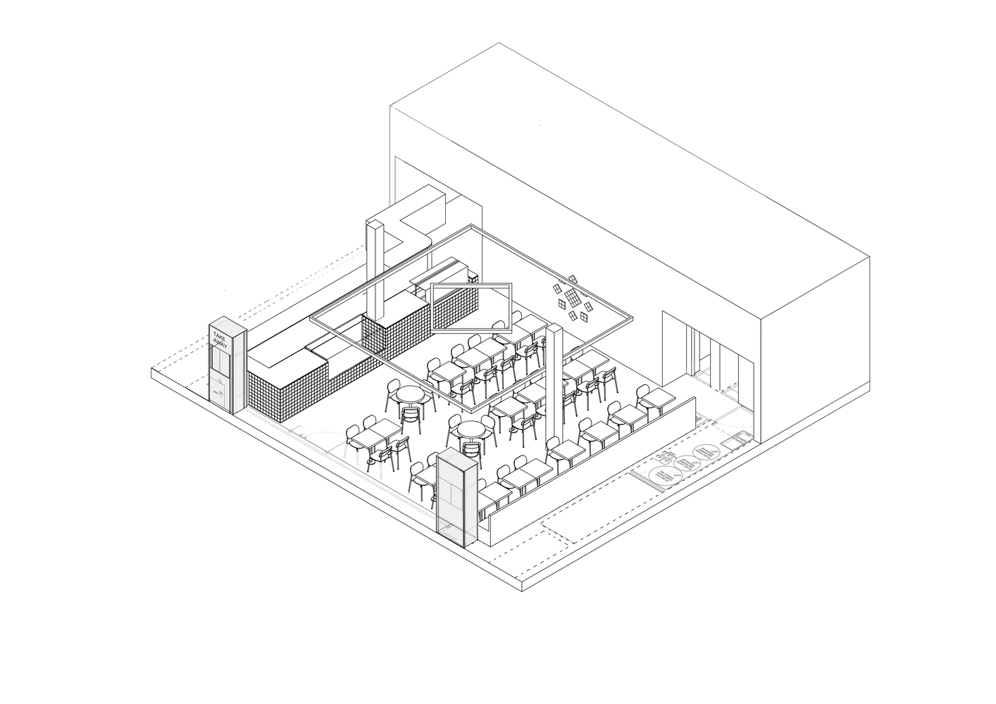 这家新店位于行人与车辆流量都很大的区域,这为吸引路人注意力提供了独特的机会。空间本身的进深与立面宽度比例均衡。设计方案旨在实现室内与街道的无缝衔接,让外部能完全看清内部空间。通过这种方式,门店成为一个真正的展示窗口,将品牌理念同时传递给外部的观望者和内部的顾客。