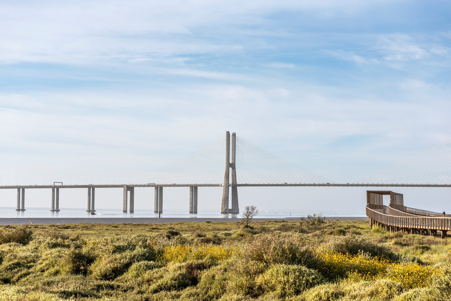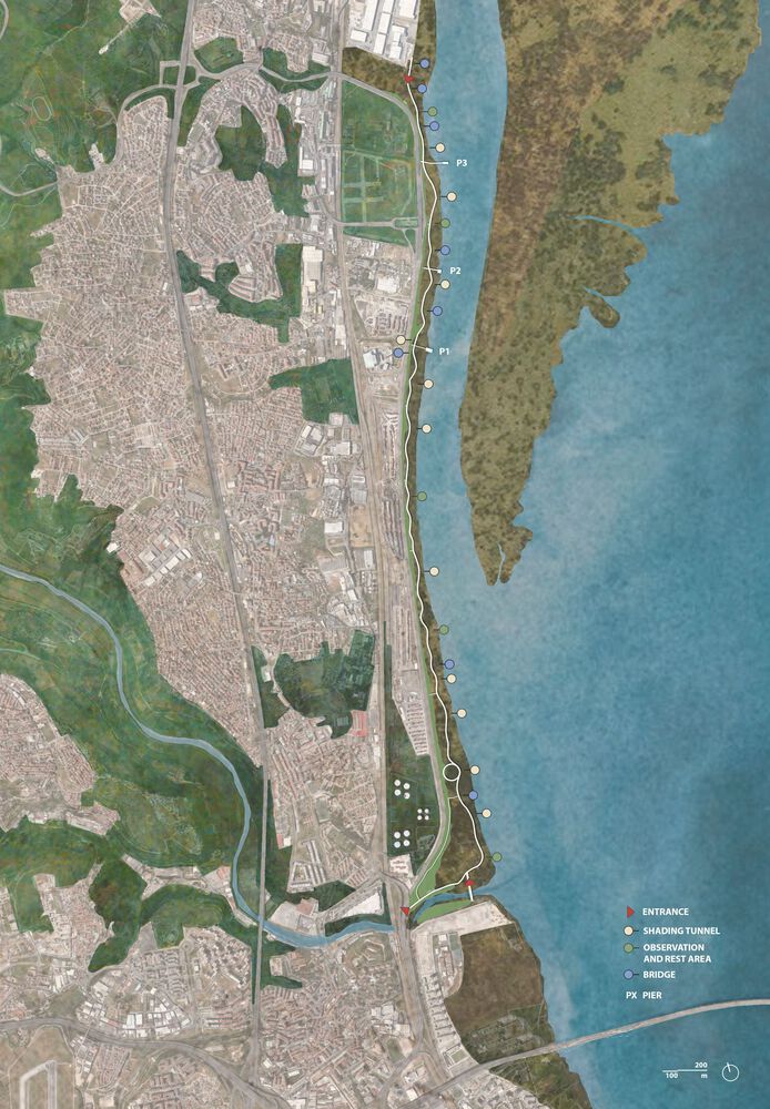 Loures Riverfront 景观栈道桥梁设计的初始前提是完善连接里斯本与 Vila Franca de Xira 的市际步行和自行车道的连续性,并巩固一项重要的战略计划,该计划旨在沿着里斯本大都市区的特茹河河岸打造一条连续的路径。