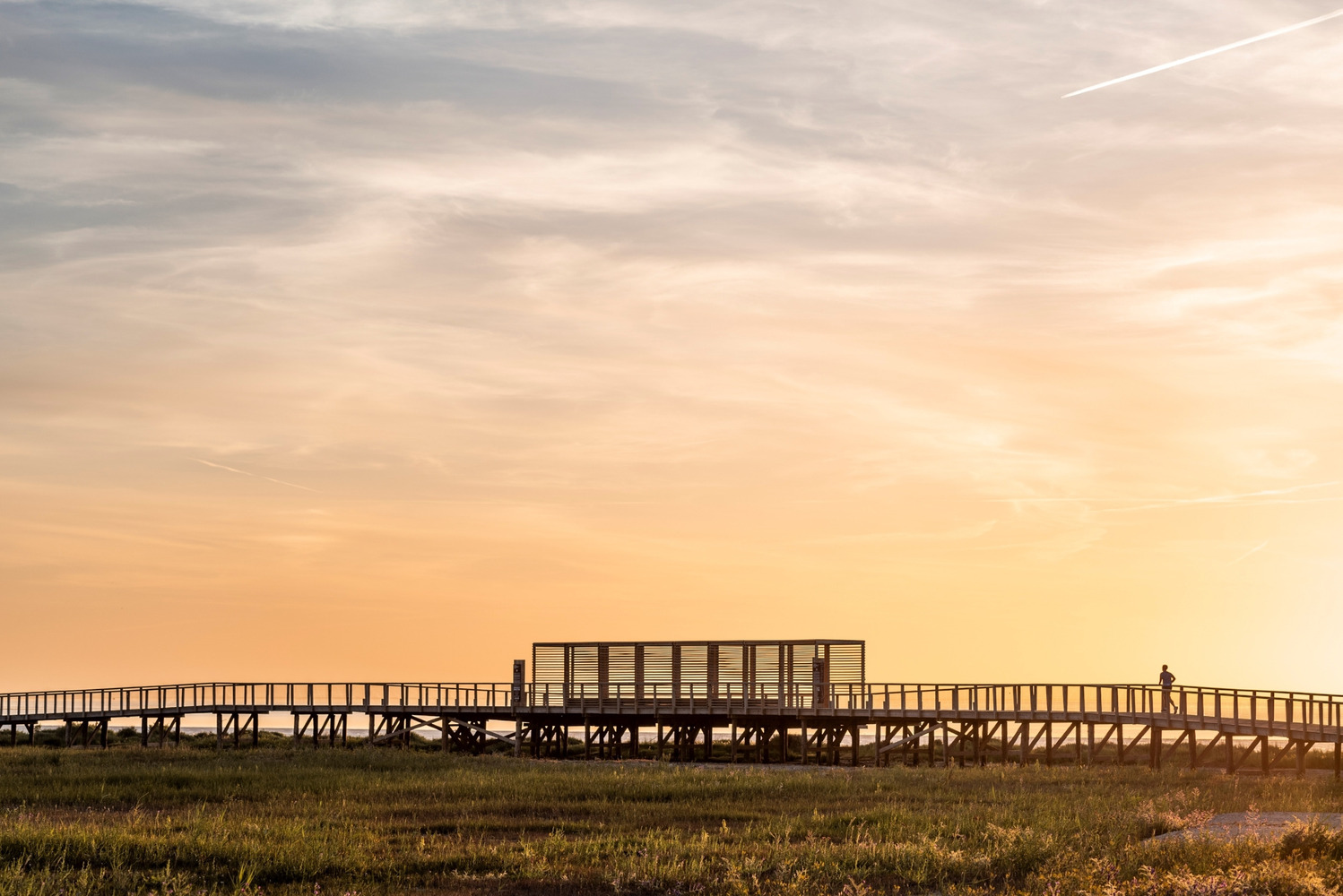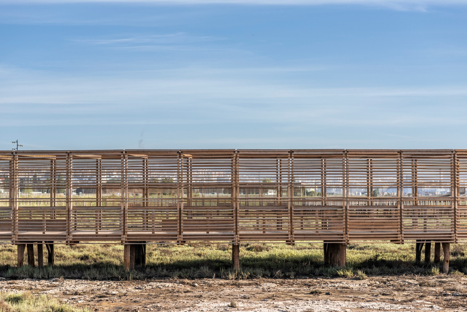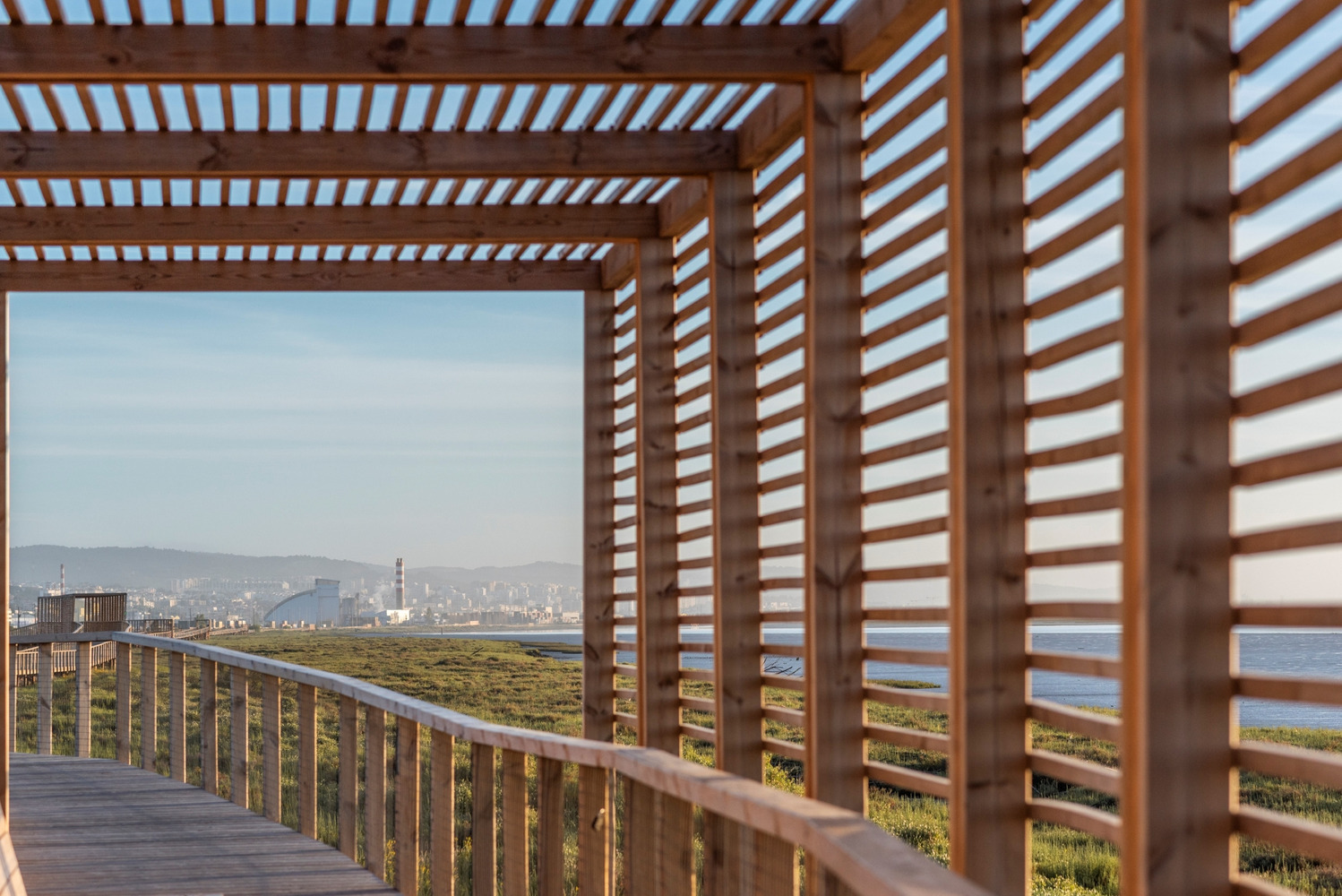 该项目并非为了提供从 A 点到 B 点的快速行程,而是旨在鼓励人们更慢地体验环境。它邀请游客观察鸟类、在河畔休憩、沉浸在沼泽的声音中。Loures 河岸路径沿着特茹河右岸延伸 6.2 公里。受蜿蜒的排水线路启发,这条小径避开直线,采用柔和的曲线形设计,让人们能从不同视角观察栖息地。