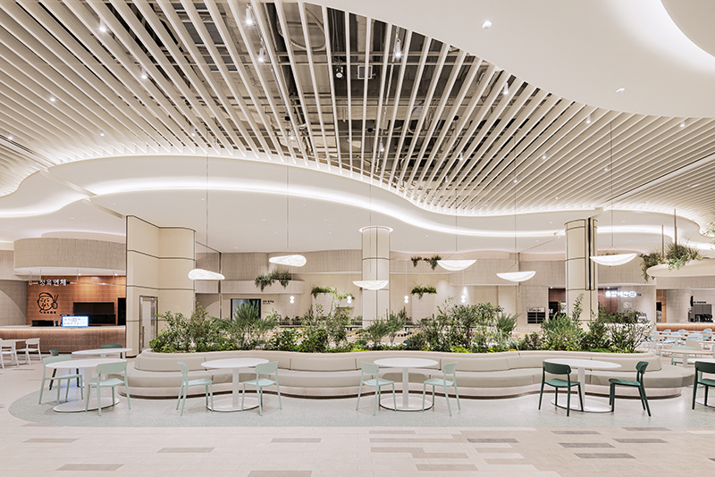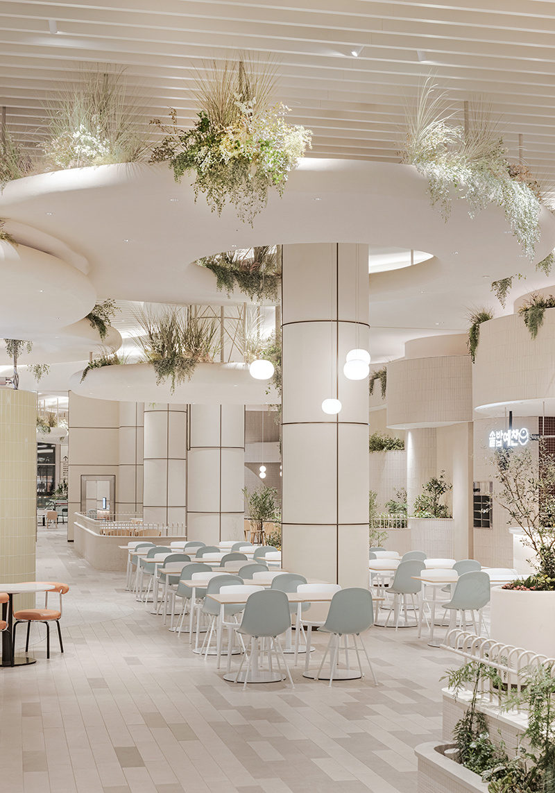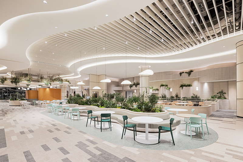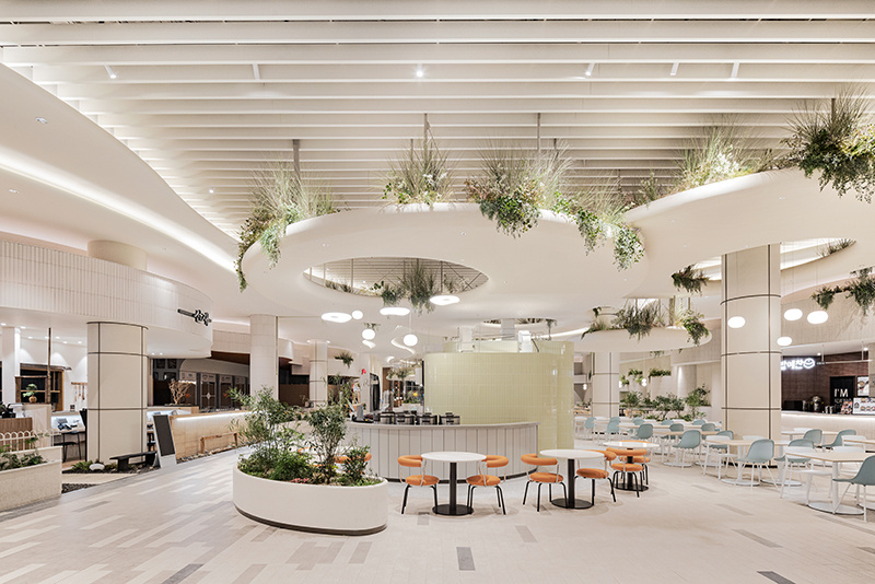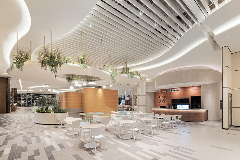 提到美食城设计,你的第一反应是什么?是拥挤的人群、混杂的油烟味,还是千篇一律的红色招牌与不锈钢桌椅?但有这样一个美食城,彻底打破了这种 “烟火气过剩,美感不足” 的刻板印象 —— 它把 “花园” 搬进了室内,用柔和的线条、清新的绿植与治愈的色调,让 “干饭” 变成了一场在自然里的吸氧式享受。