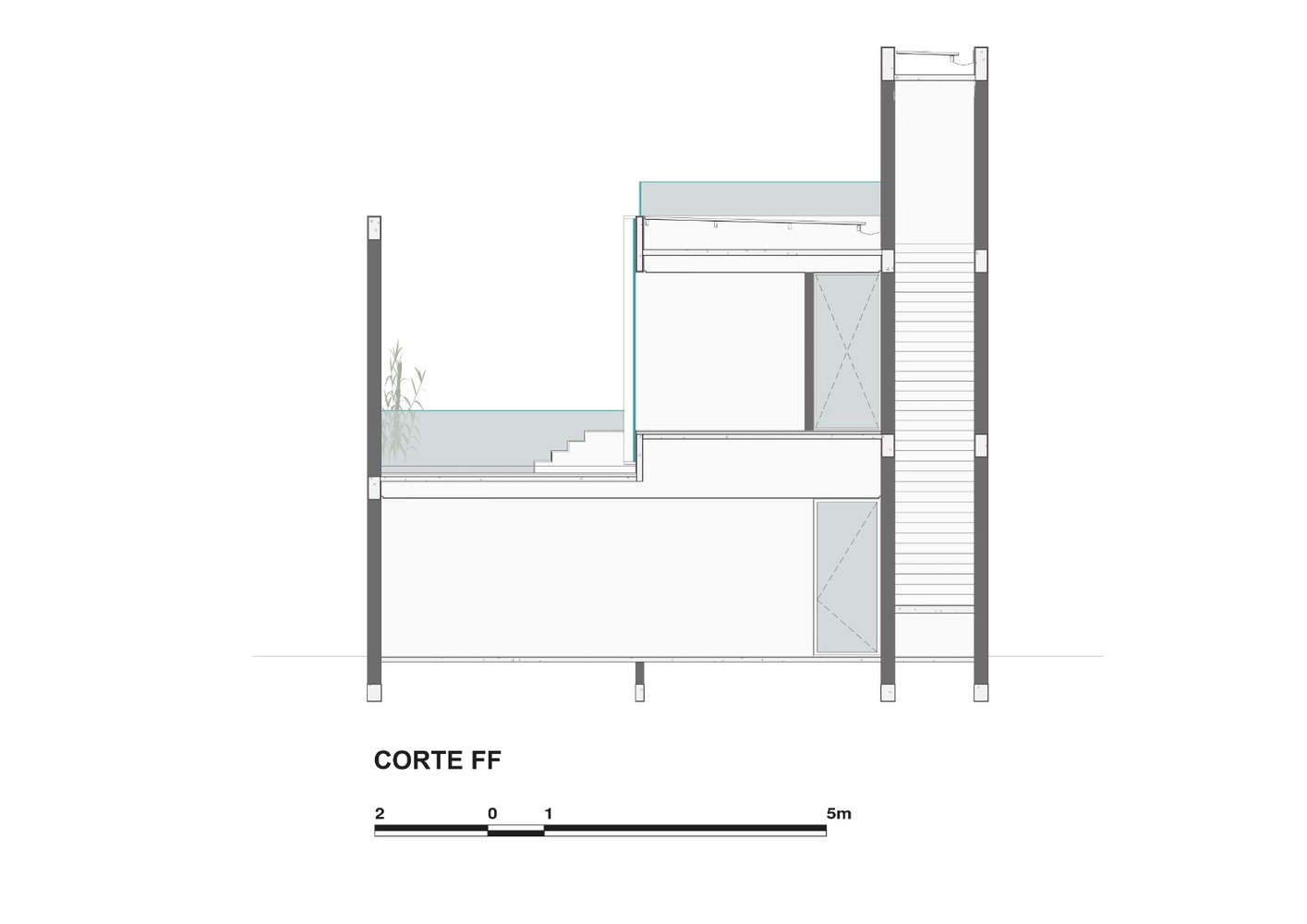 建筑正面的退台设计蕴含着重要的项目理念 —— 从符号学角度而言,这一设计向公共空间传递了明确信息:退台区域并非仅为使用这座私人属性建筑的人群服务,而是为过往行人创造了可供停留的空间。