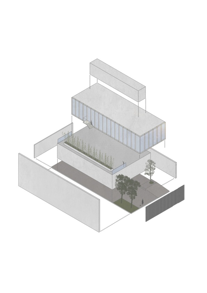 第三步是按楼层划分功能需求区域,通过调整建筑体量,打造外部空间、屋顶平台、露台,同时让建筑体块在布局上形成进退与平衡关系。