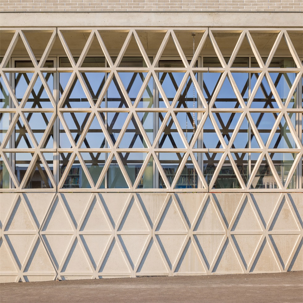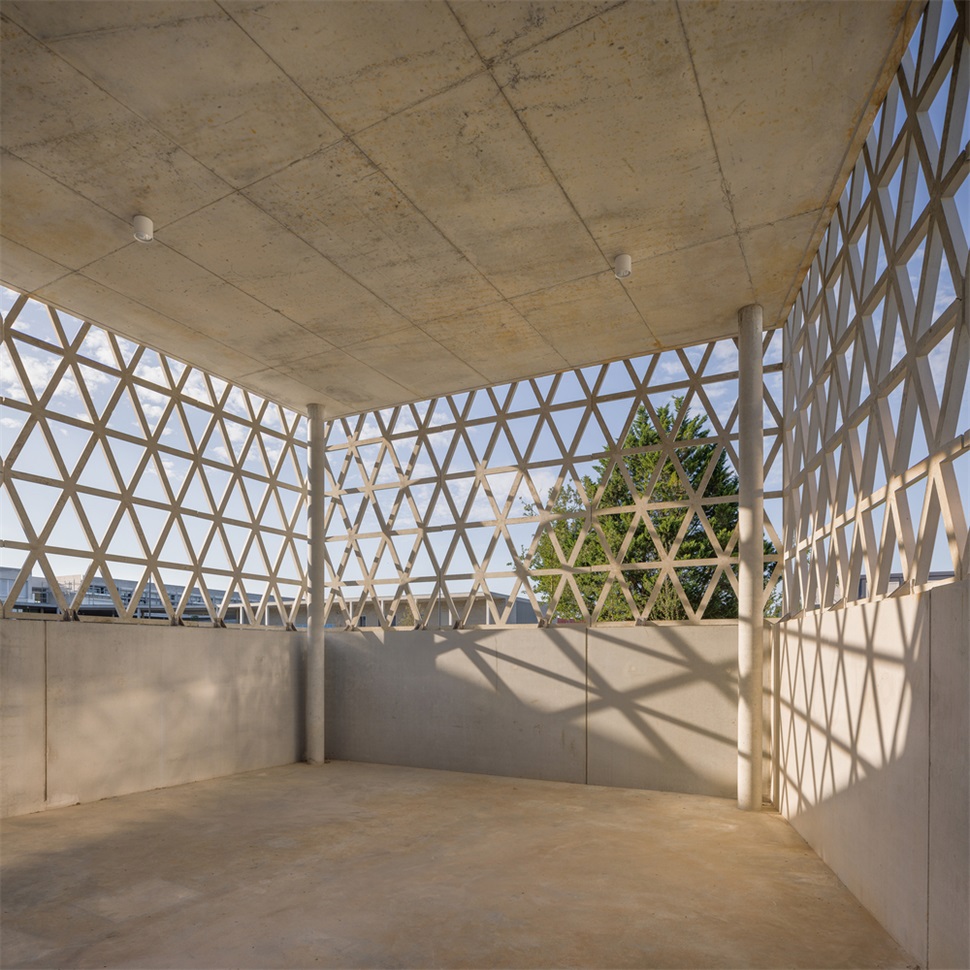 混凝土网格还为图书馆提供了一个过滤器,为学生在工作期间提供了私密性,同时又不会失去与外界的联系。第二层表皮的复杂几何形状促使每个人都参与到现场的设计和施工中。