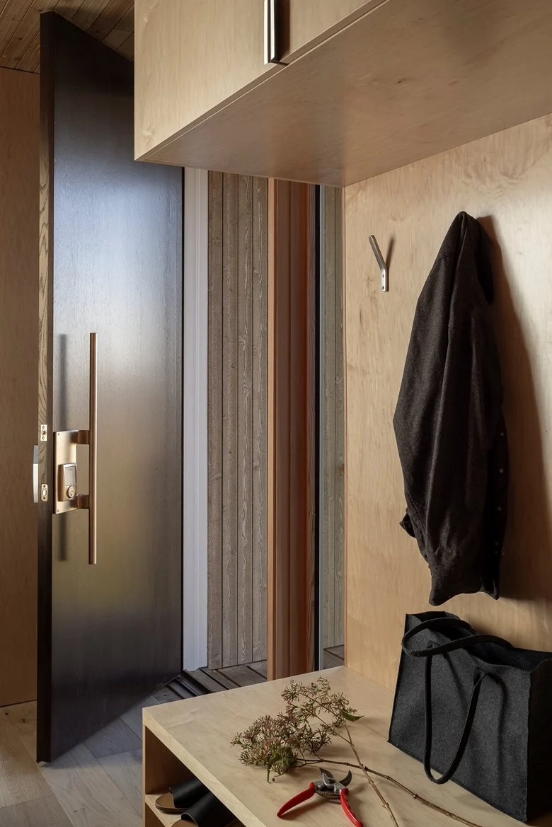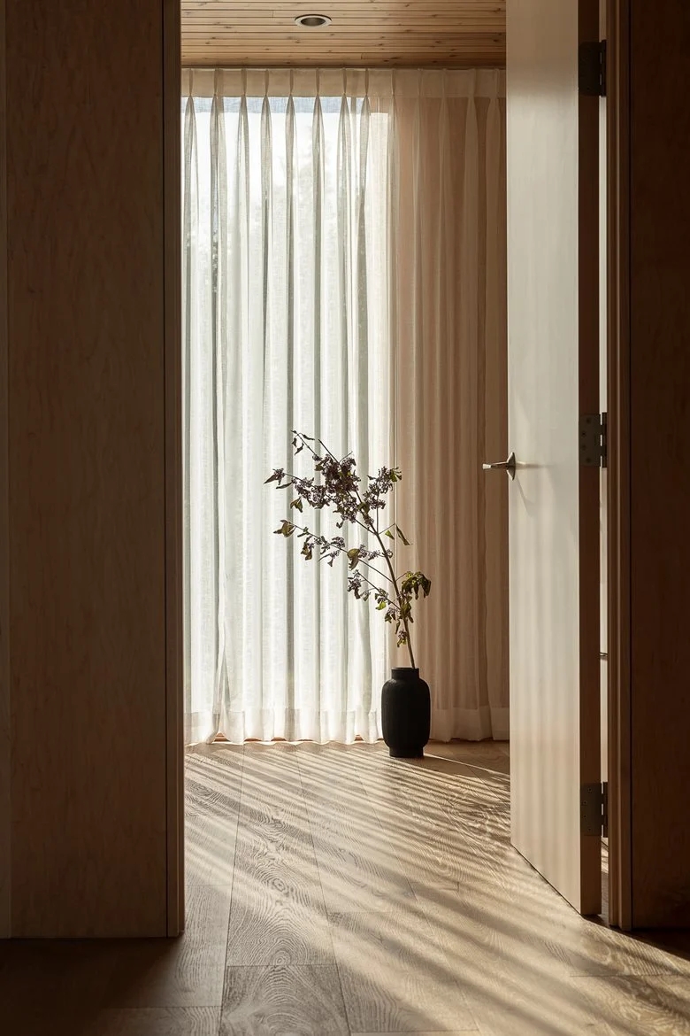 业主对电影怀有浓厚兴趣,他们希望住宅的室内外都能呈现出电影般的视觉构图。室内空间的序列让光影如同罗杰・迪金斯(Roger Deakins)电影中的场景一般,不断改变每个房间的视角与氛围。室内以中性色调为基础,让居住者的物品成为色彩的点缀和视觉焦点。这座当代风格的休憩之所,建立了人与自然环境之间的冥想式联结。住宅材质的质朴感与结构的简洁性,让它最珍贵的特质得以清晰彰显 —— 在宁静中,我们能听见自然的声音。