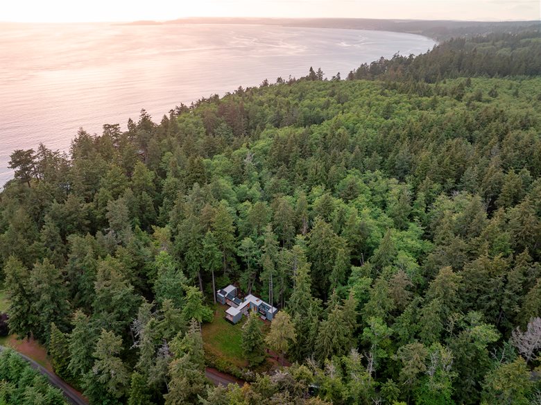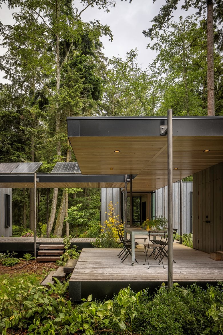 户外区域配有雪松材质的露台和檐底。由 4 个模块组成的这套住宅可进行无限重组,这充分展现了预制建筑的优势:能够打造可灵活拓展的空间,且适用于任何环境,无论是偏远地区、郊区还是城市。“Whidbey Puzzle Prefab(惠德比拼图预制住宅)” 将高性能可持续设计与无限定制化、可复制性无缝融合。