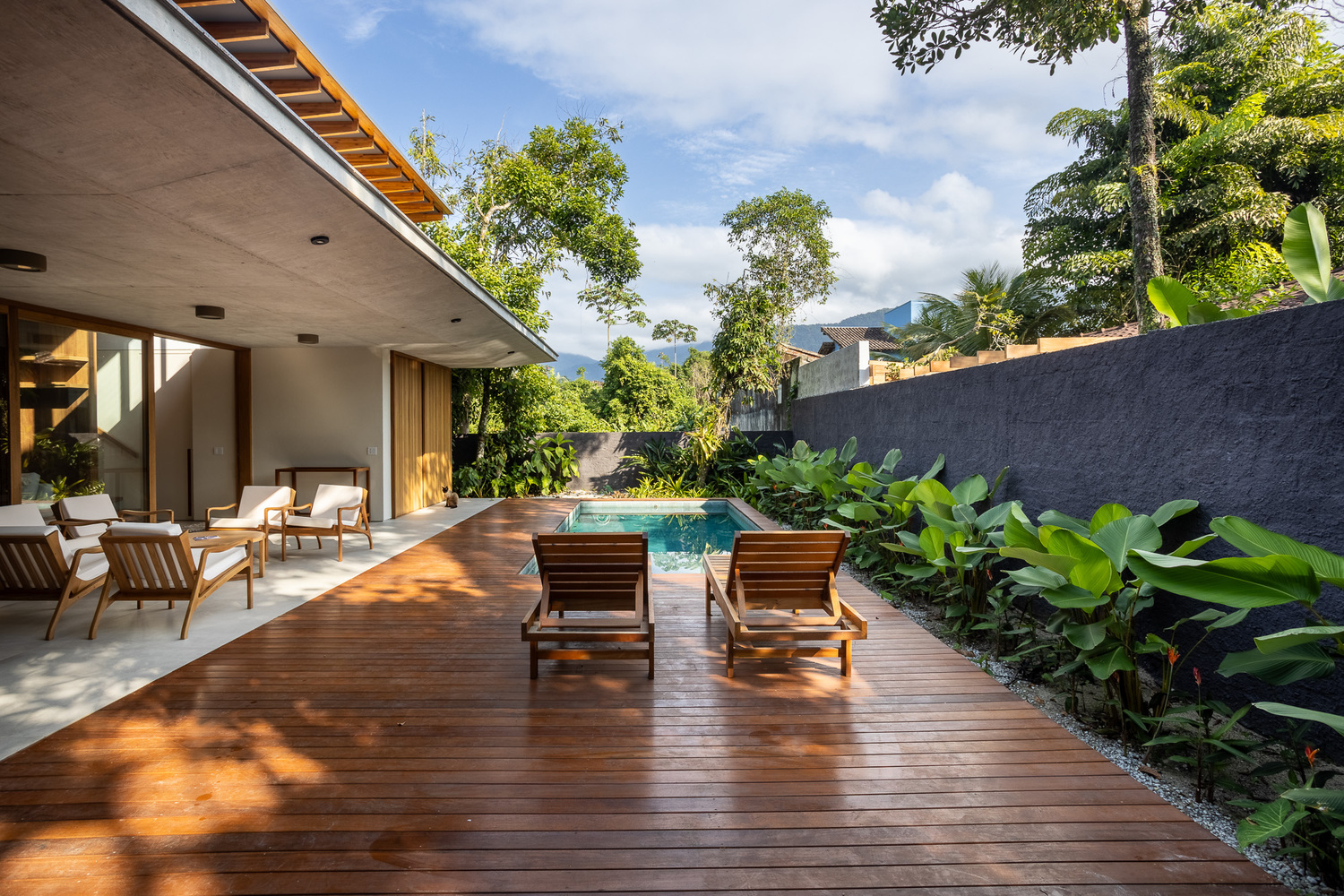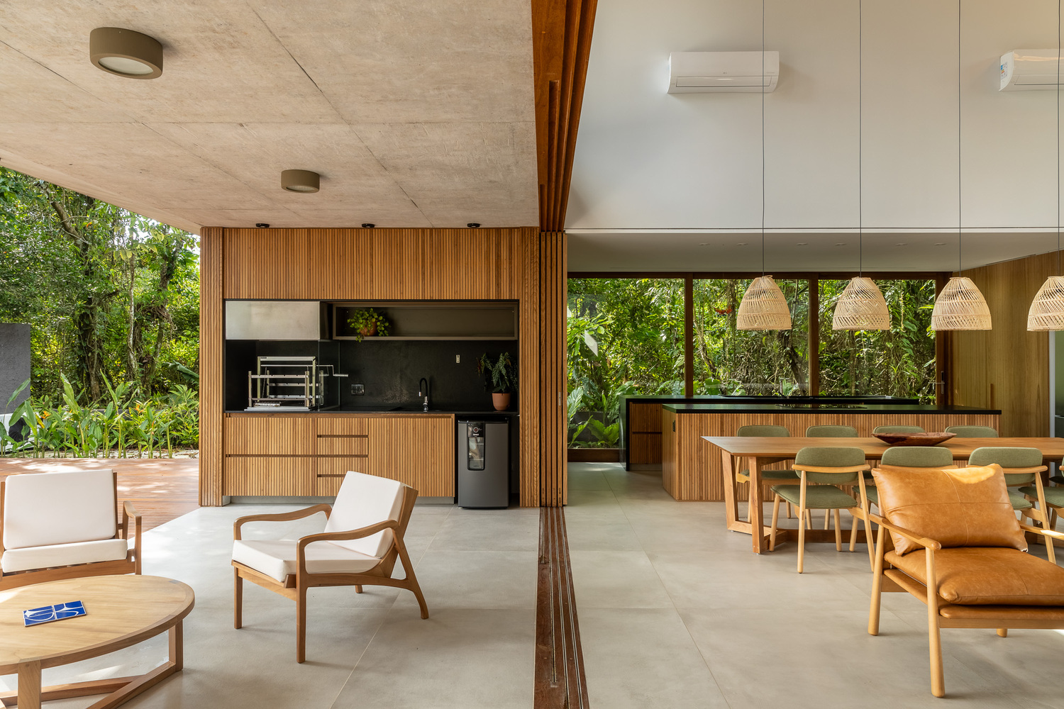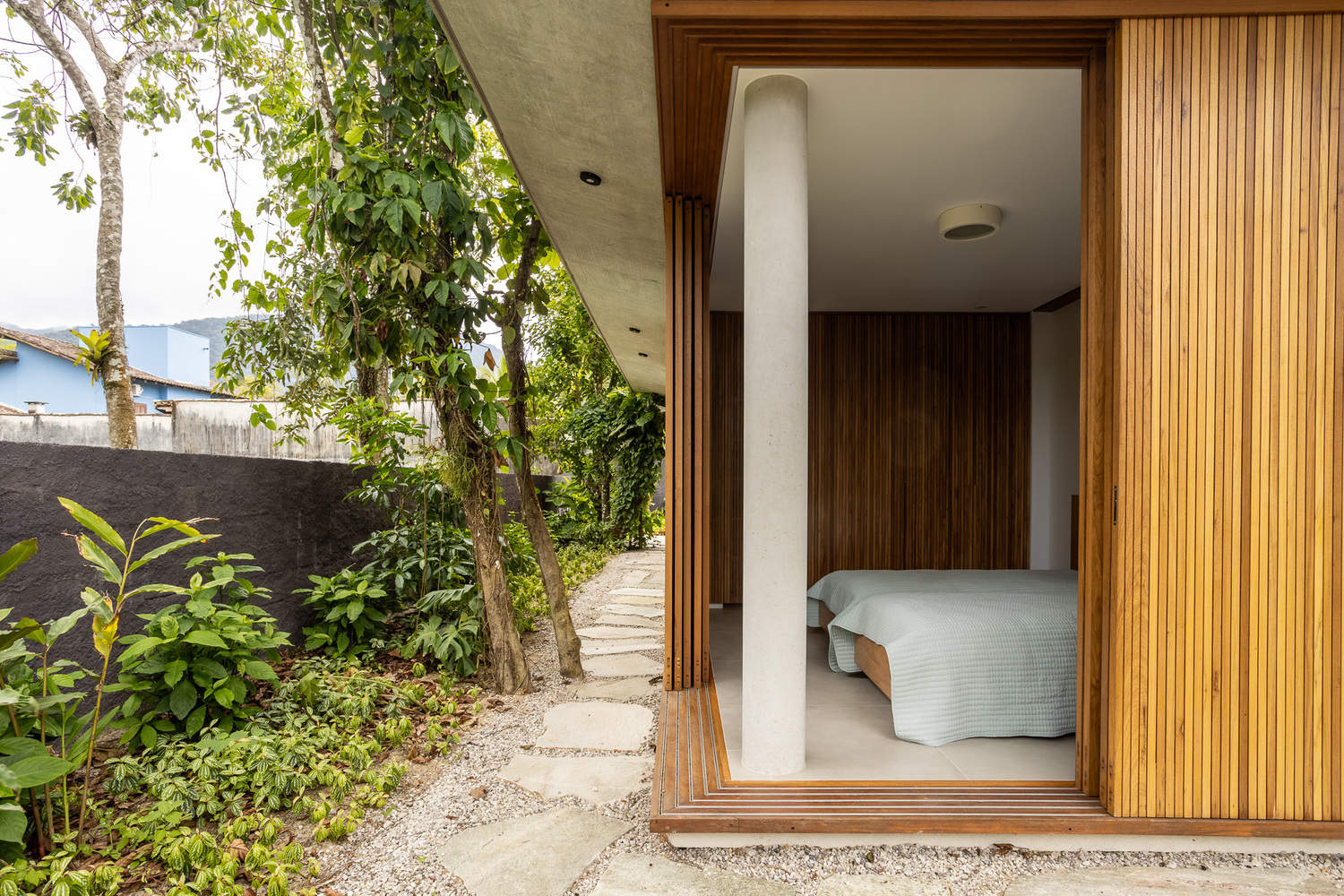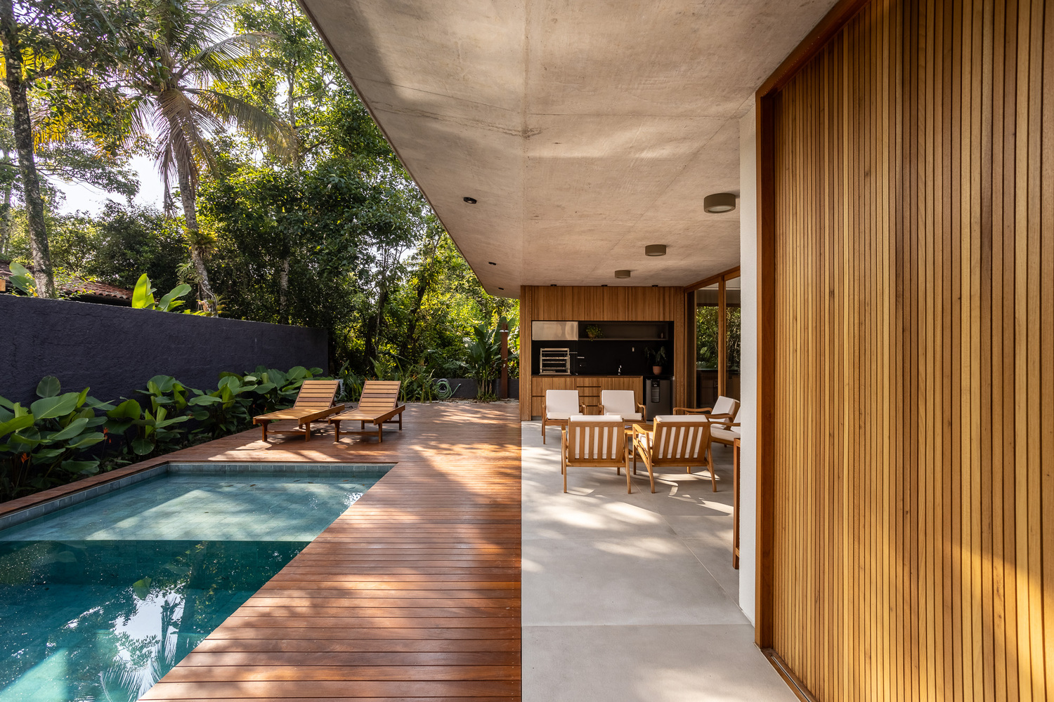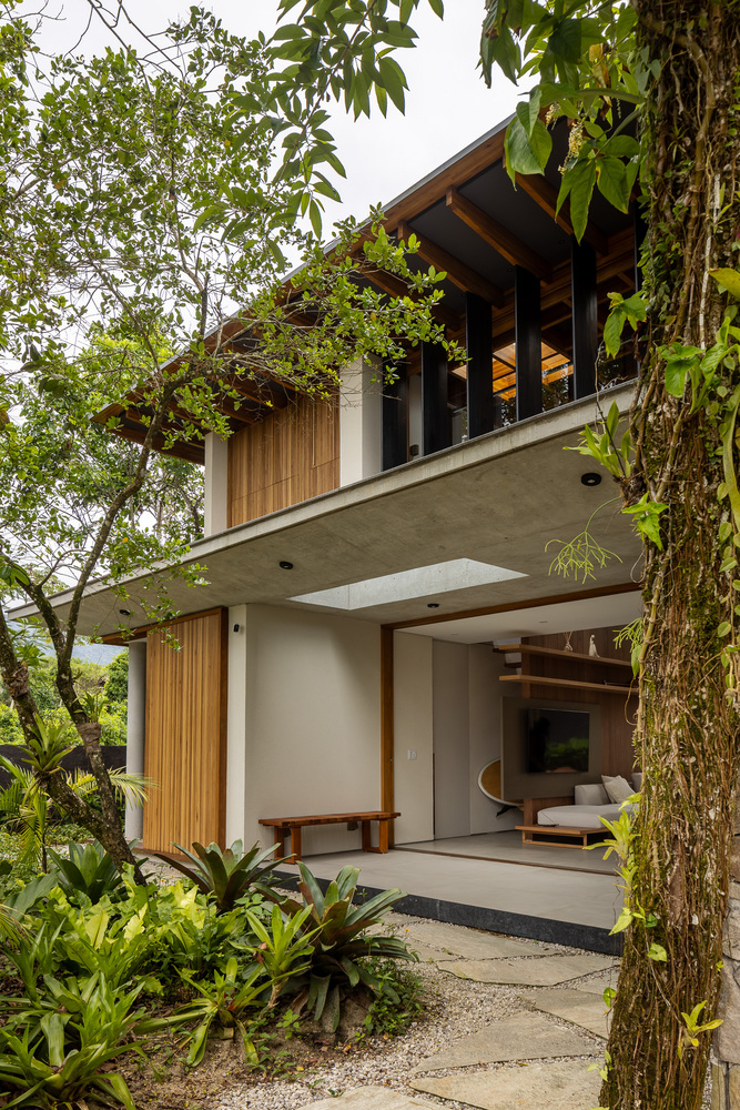 木材混凝土与玻璃交织打造热带温馨自然避风港的别墅设计