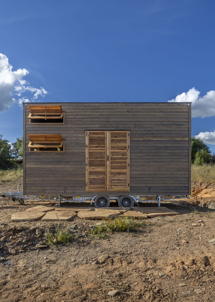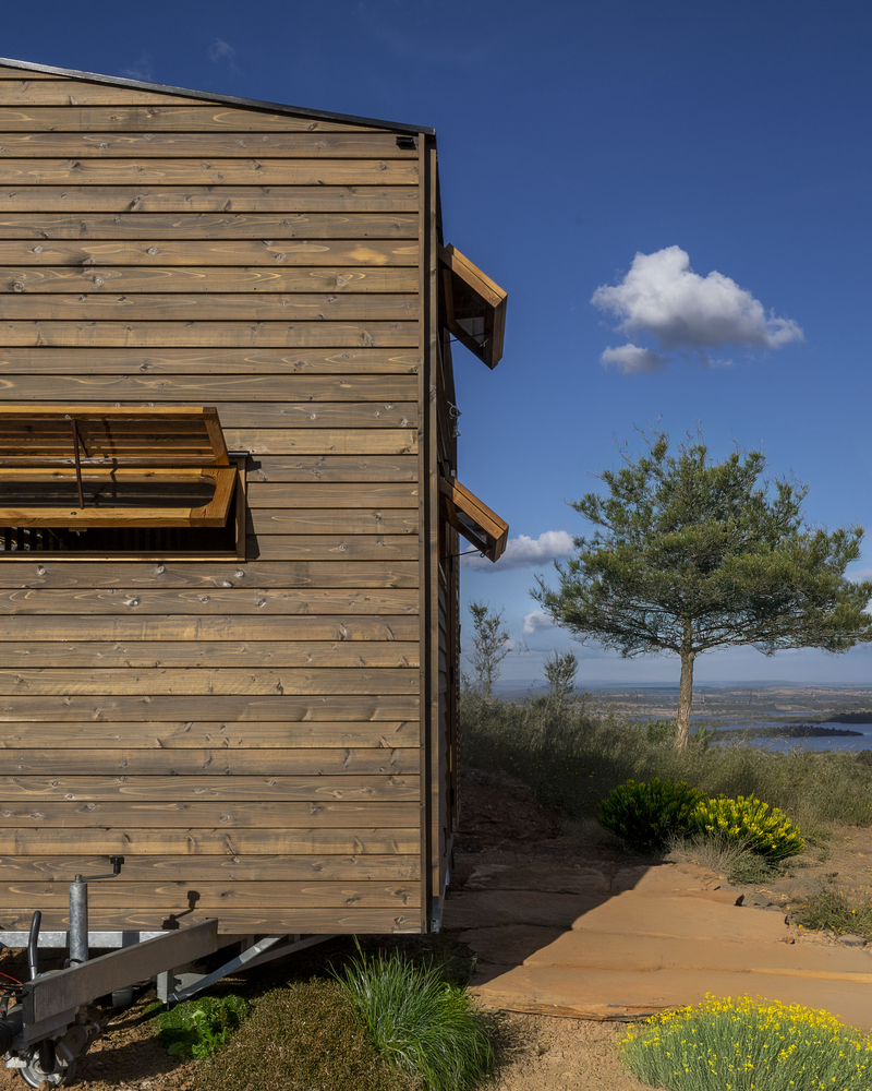 这座可移动木屋住宅设计坐落于阿连特茹宁静的风景之中,可欣赏到阿尔克瓦湖的绝美景色,它被设计为一个家庭避难所,供一对夫妇及其三个成年子女使用。