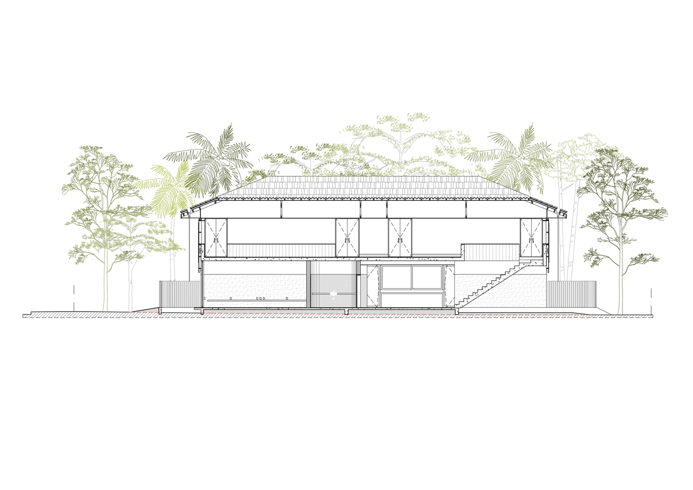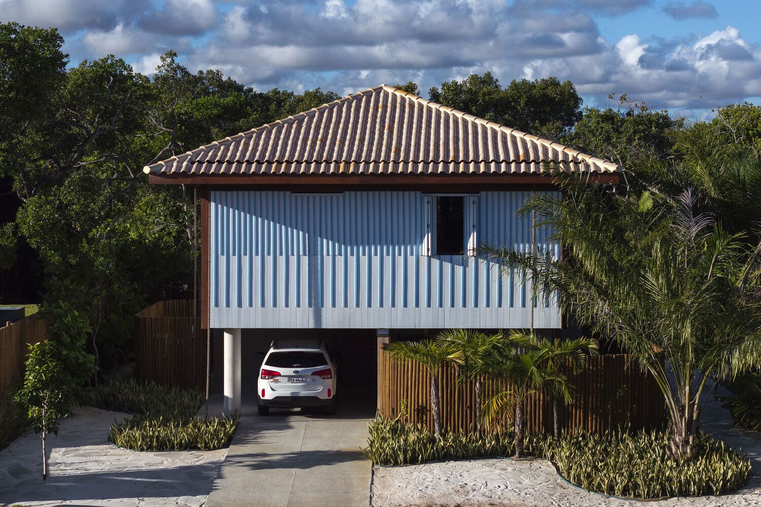 这种受热带现代主义启发的布局支撑着一个混凝土托盘,该托盘承载着二楼的结构和屋顶。