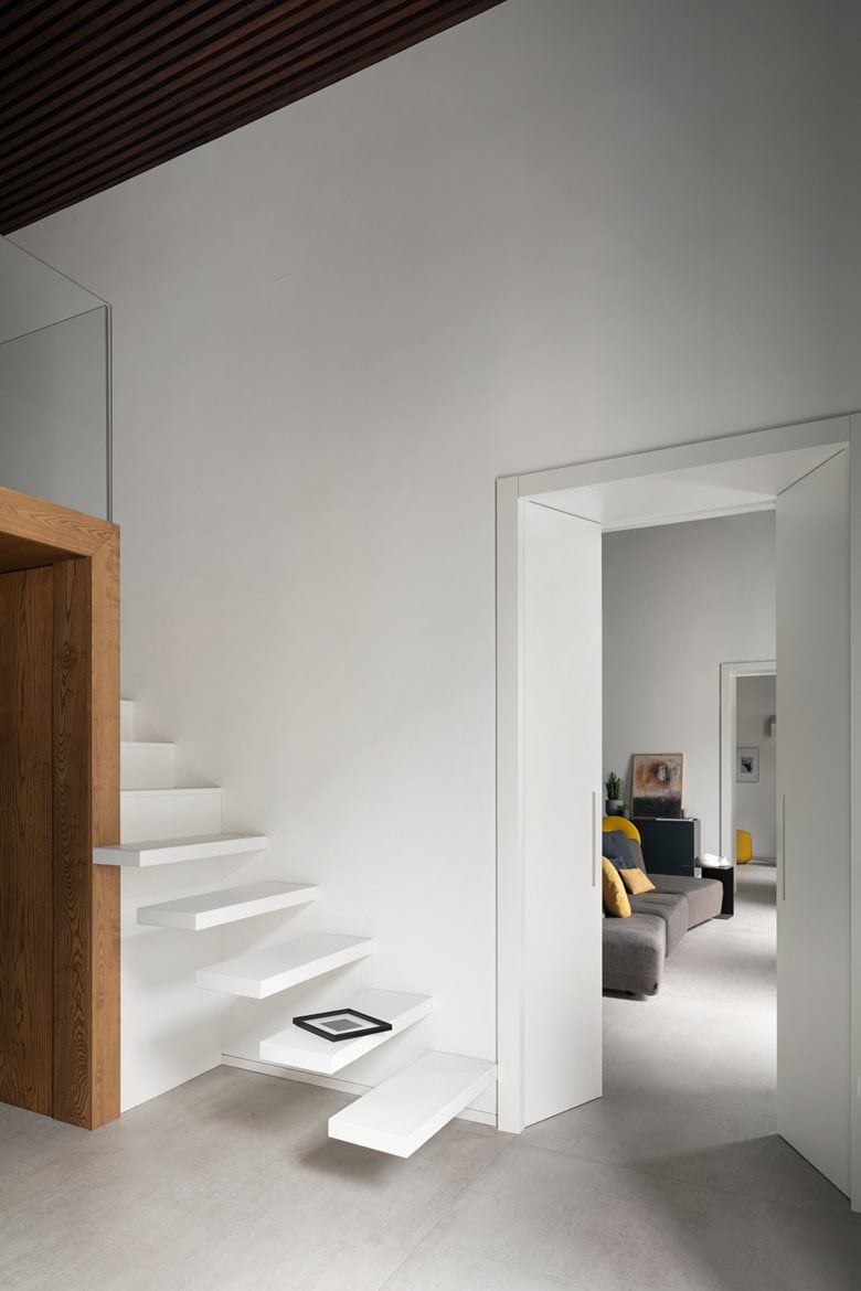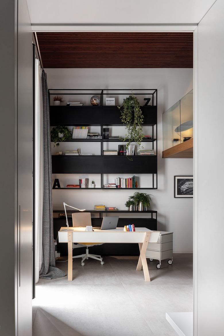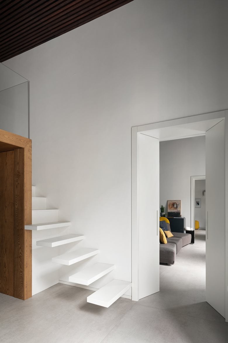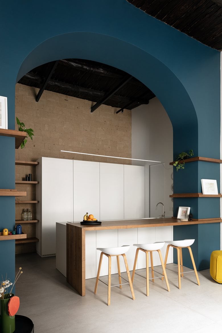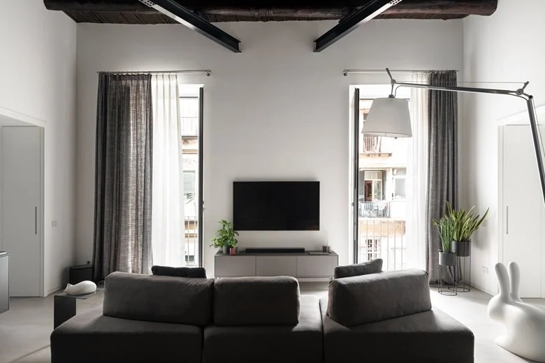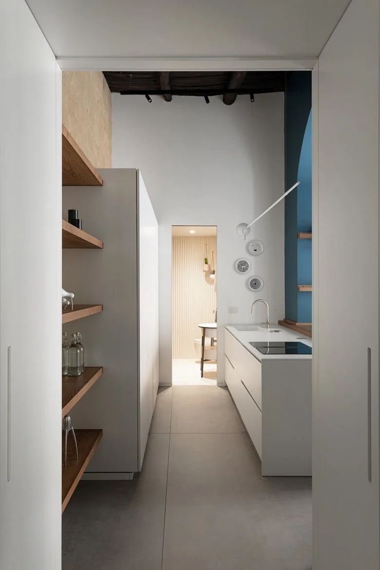 重新设计一套旧loft住宅的空间,尽可能彰显其所在建筑本身的历史记忆价值。在公寓内部,过往岁月的痕迹被妥帖融入设计选择之中:采用极简风格的浅色地面,保留原始可见的木质梁架天花板,凝灰岩砌筑的拱券结构则被中性色调的墙面所环绕 —— 这些设计让细节中蕴含的内在美感得以充分凸显。