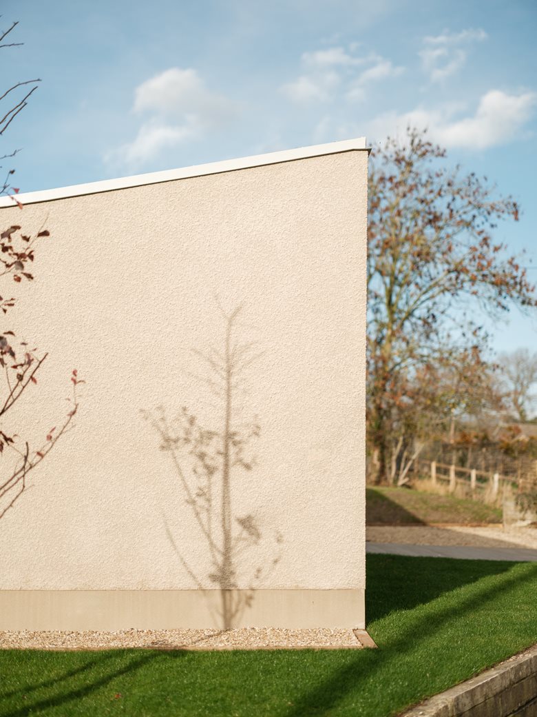 环保性能是该项目的核心竞争力,也是Bindloss Dawes事务所设计理念的重要组成部分。团队以“全生命周期可持续”为目标,通过被动式节能设计与主动式环保系统的协同作用,让这座乡村住宅实现了“零碳排放”的使用目标,为乡村住宅的绿色升级提供了可复制的范本。被动式节能设计构建了环保的第一道防线。建筑的墙体、屋顶与地面均采用高保温性能的材料与构造,有效减少室内外热量交换;门窗配备三层中空玻璃,既保障了隔音效果,又进一步提升了保温性能。这些设计从源头降低了建筑的能源消耗,为实现零碳目标奠定了基础。主动式环保系统则为住宅提供了清洁高效的能源支持。现场安装的可再生空气源热泵,以高效节能的方式为住宅提供稳定的供暖与生活热水,相比传统燃气供暖大幅减少碳排放;屋顶铺设的光伏板系统则将太阳能转化为清洁电力,满足住宅的日常用电需求。被动式设计与主动式系统的无缝衔接,使住宅彻底摆脱了对传统化石能源的依赖,实现了能源的自给自足与零碳排放。