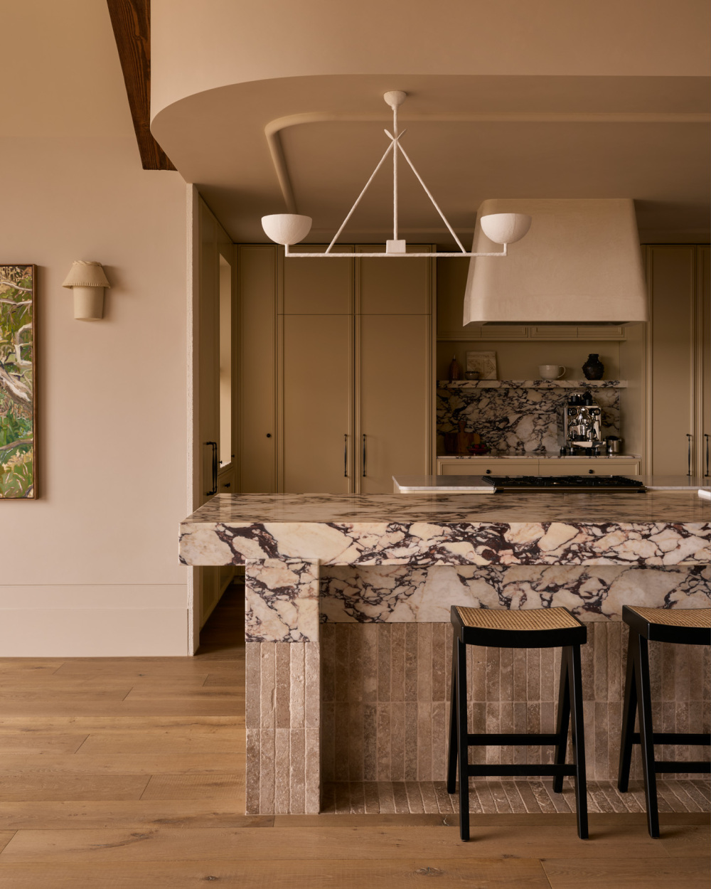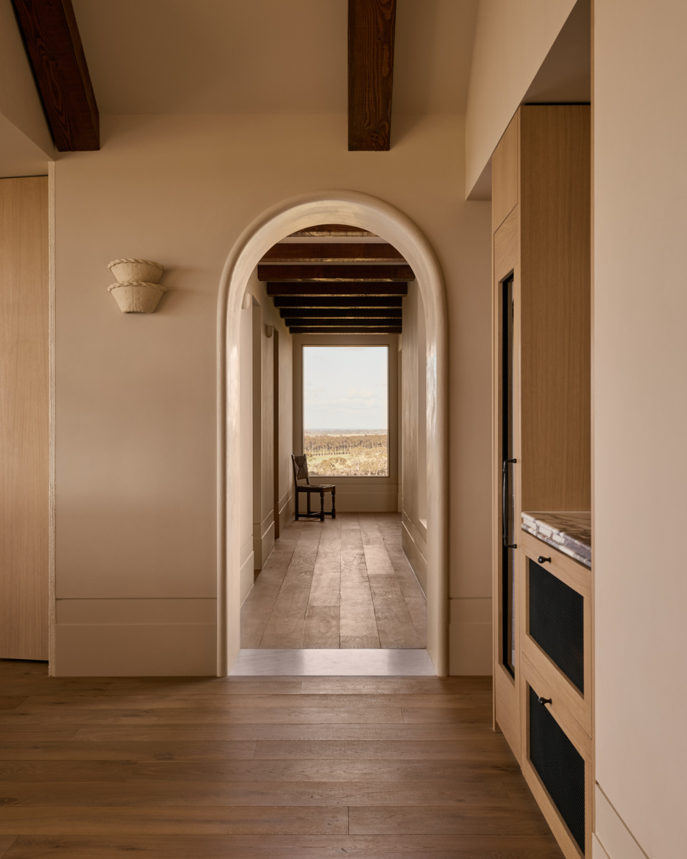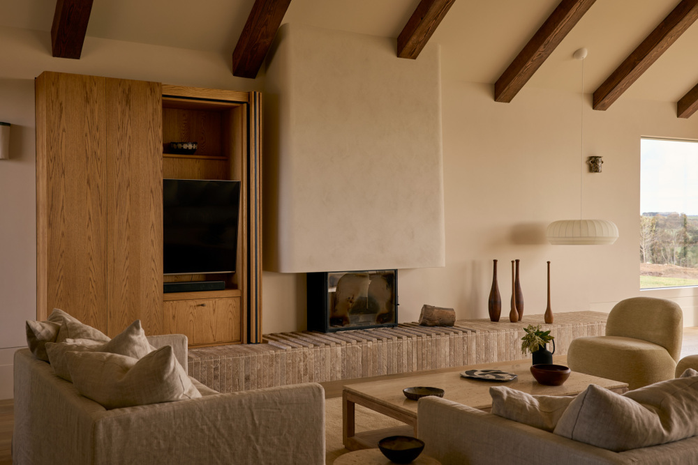 为了让这份期待落地,夫妇二人与 Studio Hallihan 负责人 Tanya Love-Hallihan 的合作,本质是 “需求与设计的双向奔赴”。设计团队没有用欧式风格的符号堆砌(如过度繁复的雕花、厚重的装饰),而是提取其 “优雅内核”:保留欧式庄园特有的坡屋顶弧度、温润的材质肌理,让空间透着经典质感;同时紧扣 “现代功能” 与 “成长属性”—— 比如开放式餐厨区打破传统隔阂,方便家人日常互动;房间布局预留灵活改造空间,可随孩子成长从儿童房转为书房;观景区域的设计则弱化 “室内外边界”,让自然景色成为家庭生活的日常背景。