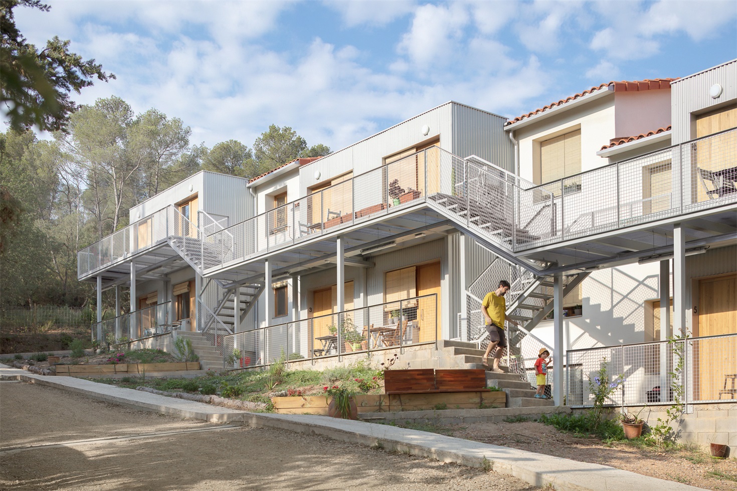 – 可持续性。该合作社的基本前提之一是建造一幢具有高度可持续性和低碳足迹的建筑:包括使用无污染的当地材料、选择预制木框架结构、为建筑提供高度隔热性能,以及安装高效的集体设施,如中央颗粒锅炉或中水和雨水回收处理系统。